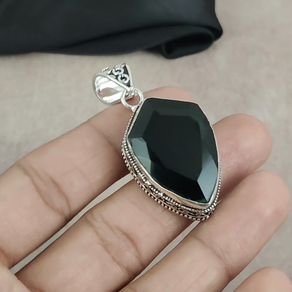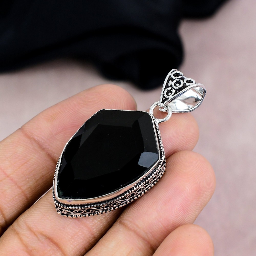 Setting Style:BezelColor:SilverMain Stone Color:BlackDiamond Clarity Grade:N/ATheme:Beauty, Bohemian, Ethnic, Halloween, Love, NatureMain Stone:Black OnyxFeatures:HandmadeMain Stone Treatment:Not EnhancedMetal:Sterling SilverNumber of Gemstones:1Brand:HandmadeMain Stone Shape:Same As PictureChain Type:N/ACertification:N/AMaterial:GemstoneTotal Carat Weight:10 carat and aboveCountry/Region of Manufacture:IndiaNumber of Diamonds:N/AStyle:PendantMetal Purity:925Collection:HandmadeCut Grade:N/AOccasion:Anniversary, Birthday, Christening, Christmas, Engagement, Father's Day, Graduation, Mother's Day, Valentine's Day, WeddingCountry of Origin:IndiaColored Diamond Intensity:N/ADiamond Color Grade:N/AMain Stone Creation:NaturalBase Metal:Sterling SilverNecklace Length:5.3"Type:PendantSecondary Stone:N/APendant/Locket Type:Same As PicturePendant Shape:Same As PictureClosure:Same As Picture