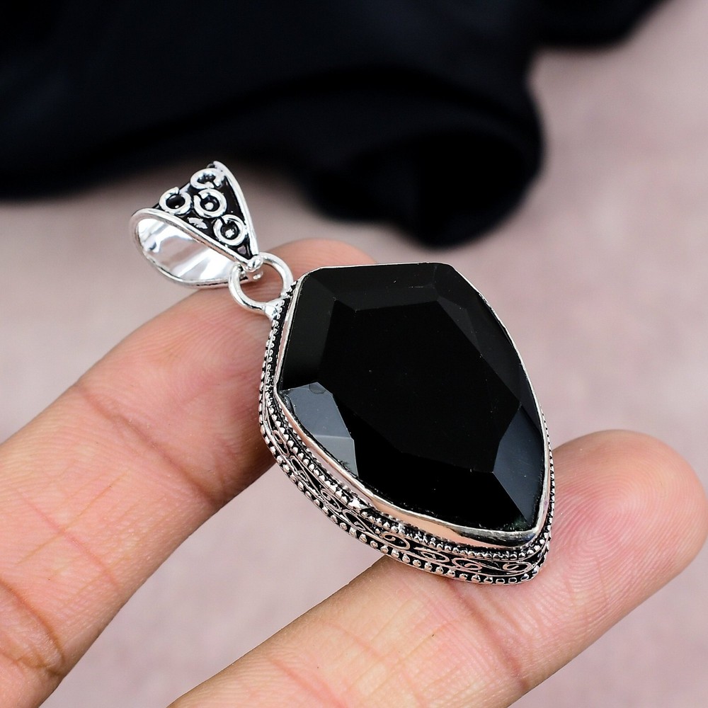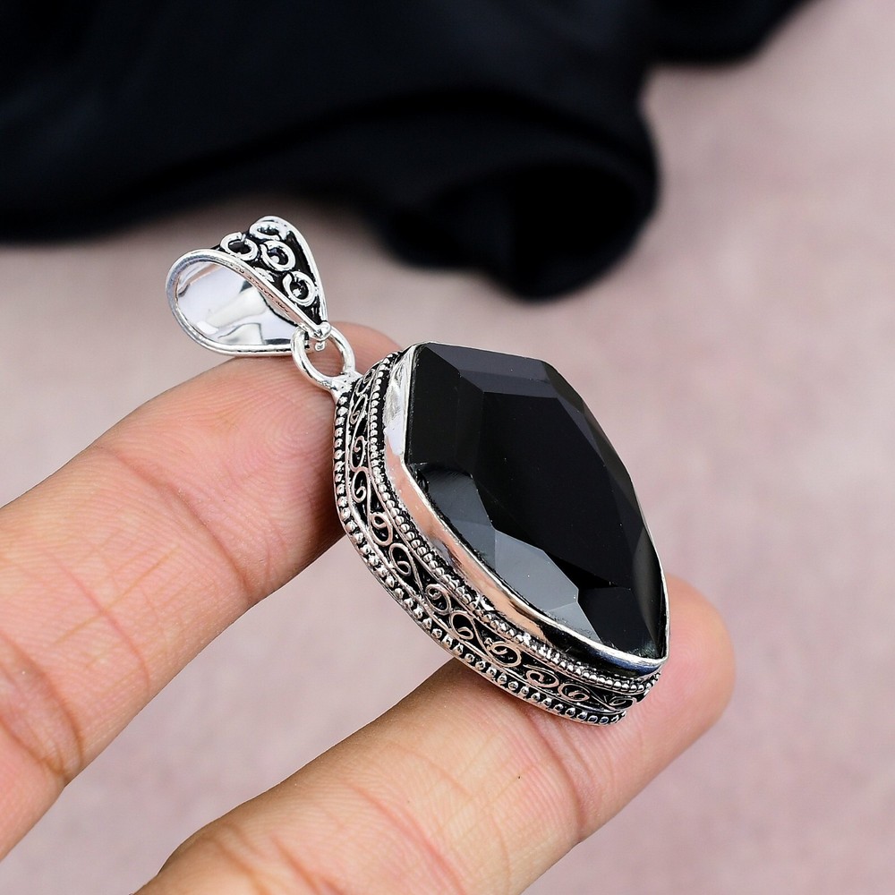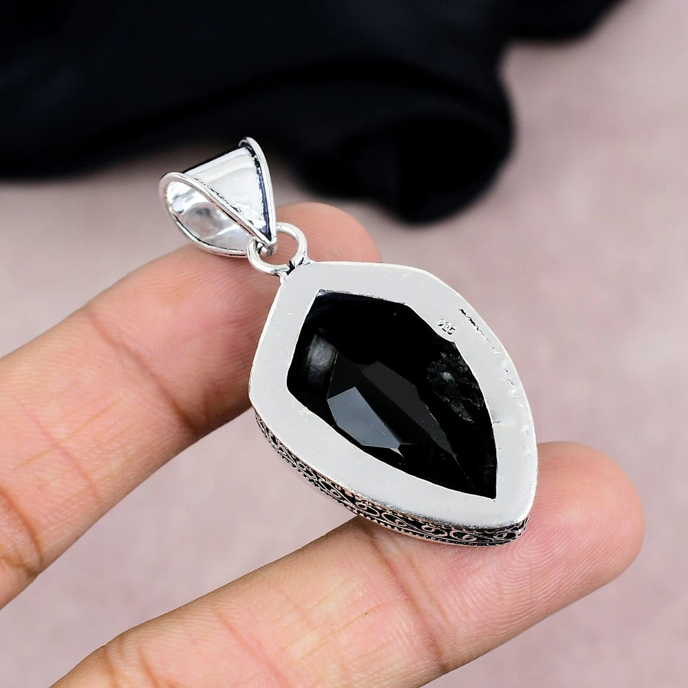 Black Onyx Gemstone Handmade 925 Sterling Silver Pendant Jewelry Gift