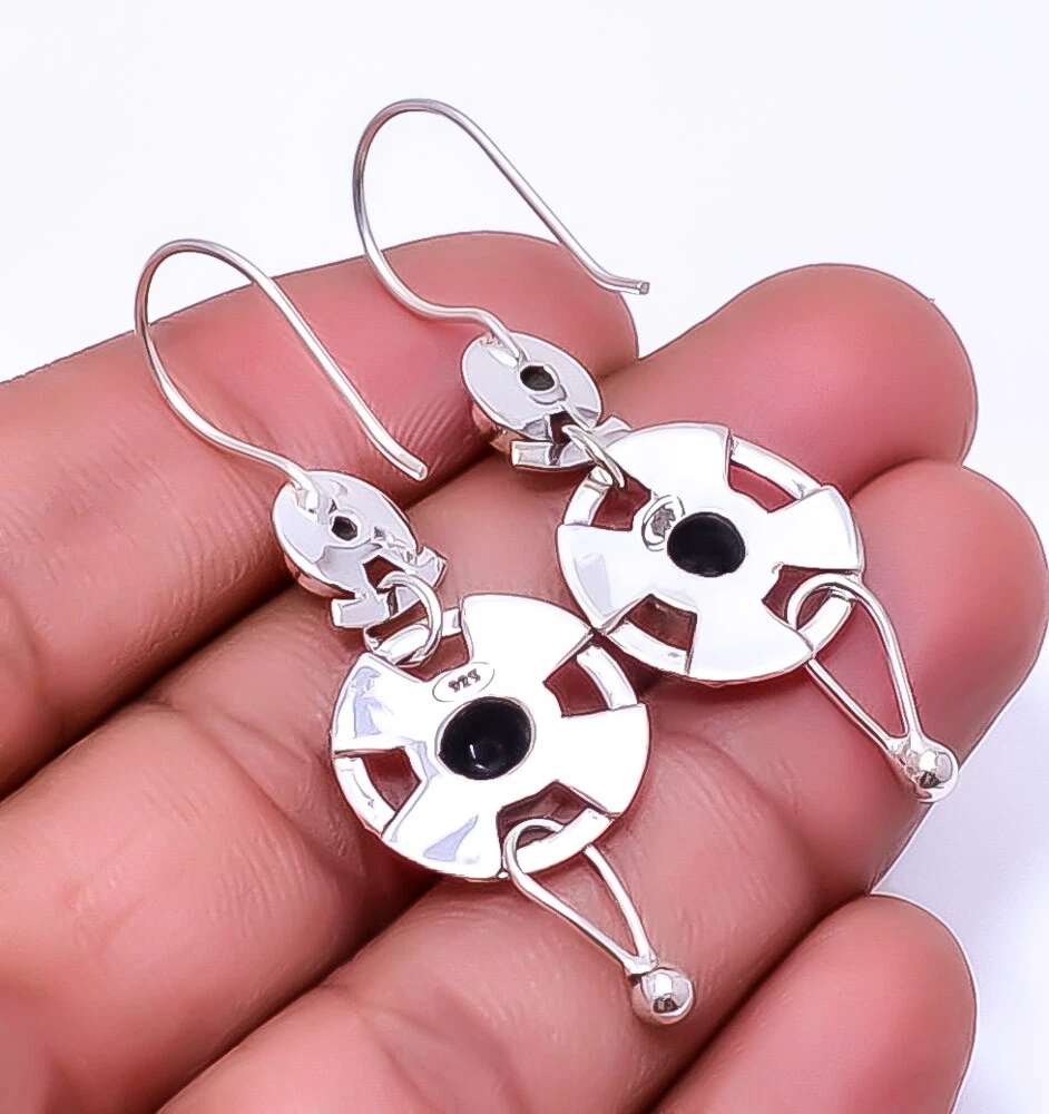 Theme Beauty Main Stone Depth As Seen in Picture Main Stone Length As Seen in Picture Main Stone Width As Seen in Picture Seller Warranty Yes Shape As Seen in Picture SKU E_9349_129_13 Main Stone Size 8X8 Mm Antique Yes Handmade Yes Type Earring Style Drop/Dangle Metal Sterling Silver Metal Purity 925 Parts Per 1000 Base Metal Sterling Silver Total Carat Weight 29.5 Main Stone Black Onyx Main Stone Creation Lab-Created Main Stone Shape Round Main Stone Color Black Main Stone Treatment Lab-Created Material Gemstone, Stone Number of Gemstones 4 Item Length 1.95 Features Engraved, Nickel-Free, Handcrafted Ear Area Lobe Brand Unbranded Country/Region of Manufacture India Country of Origin United States Color As Seen in Picture Diamond Clarity Grade Not Applicable Number of Diamonds As Seen in Picture Item Diameter As Seen in Picture Gemstone Clarity Grade Opaque Diamond Color Grade Not Applicable Customized No Colored Diamond Intensity Not Applicable Certification 100% Genuine Guaranteed Setting Style Bezel Occasion Christmas, Birthday, Anniversary, Engagement, Wedding, Valen Shipping & Handling - Charge - 1st item-5.90 And Additional item-1.90 Handling Time - 1 Days . Delivery Time - 2 TO 3 DAYS. Shipping Service - USPS First Class Package 2 -3 Days. Returns - 1.We offer a 100% Money Back Guarantee minus shipping for 30 days after receiving the Item / item's. 2..The item must not be altered or damaged in any way shape or form. 3.Upon receiving these items your payment will be refunded. 4.Email us for return instructions before sending merchandise back. 5.Please allow up to 1 business day for all returns to receive credit. 6.Sizing does not affect the return policy. Payment - We accept PayPal for Payment ,should made with in 14 days once buying or winning done , in case of late information expected .