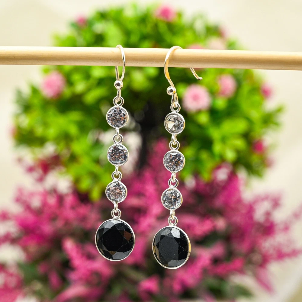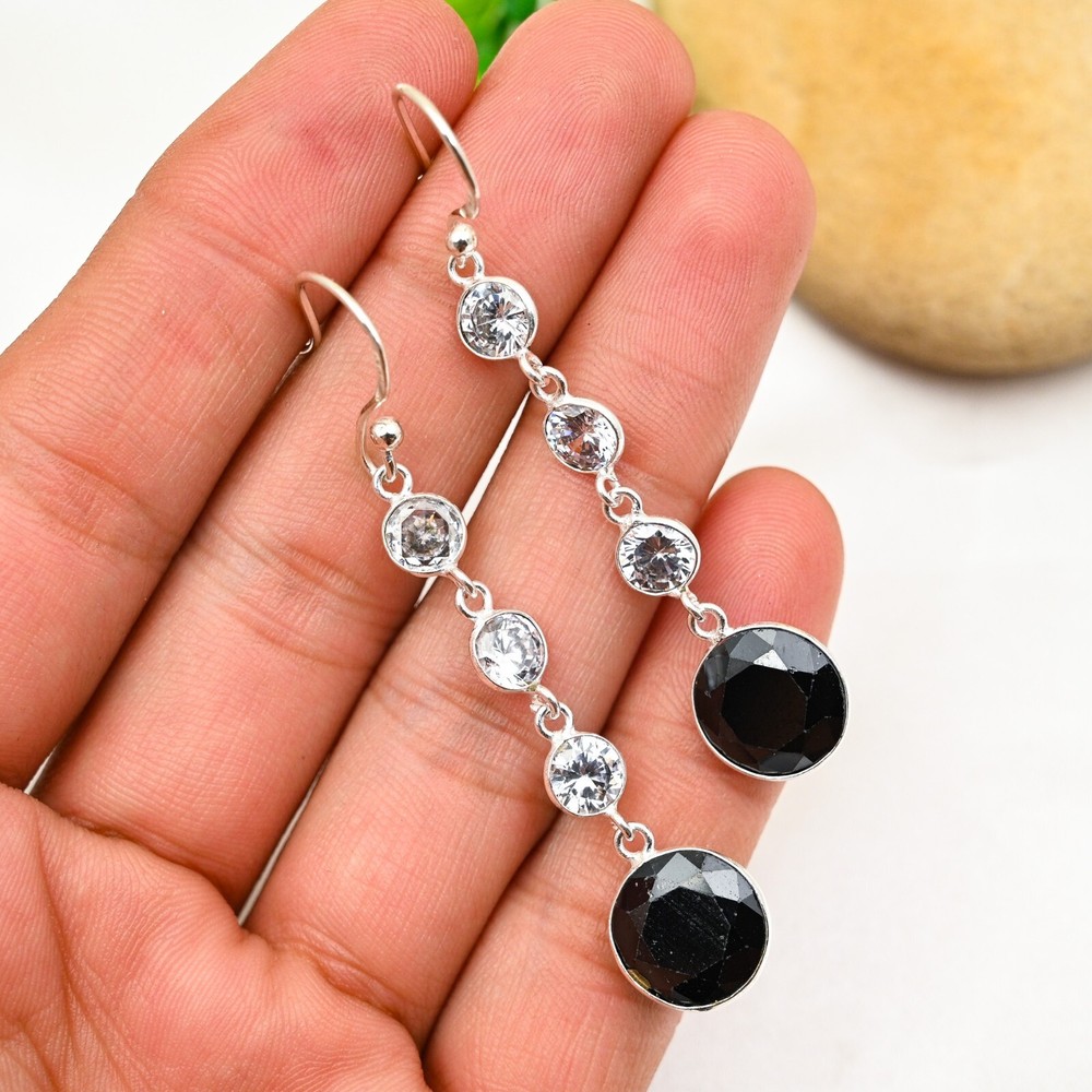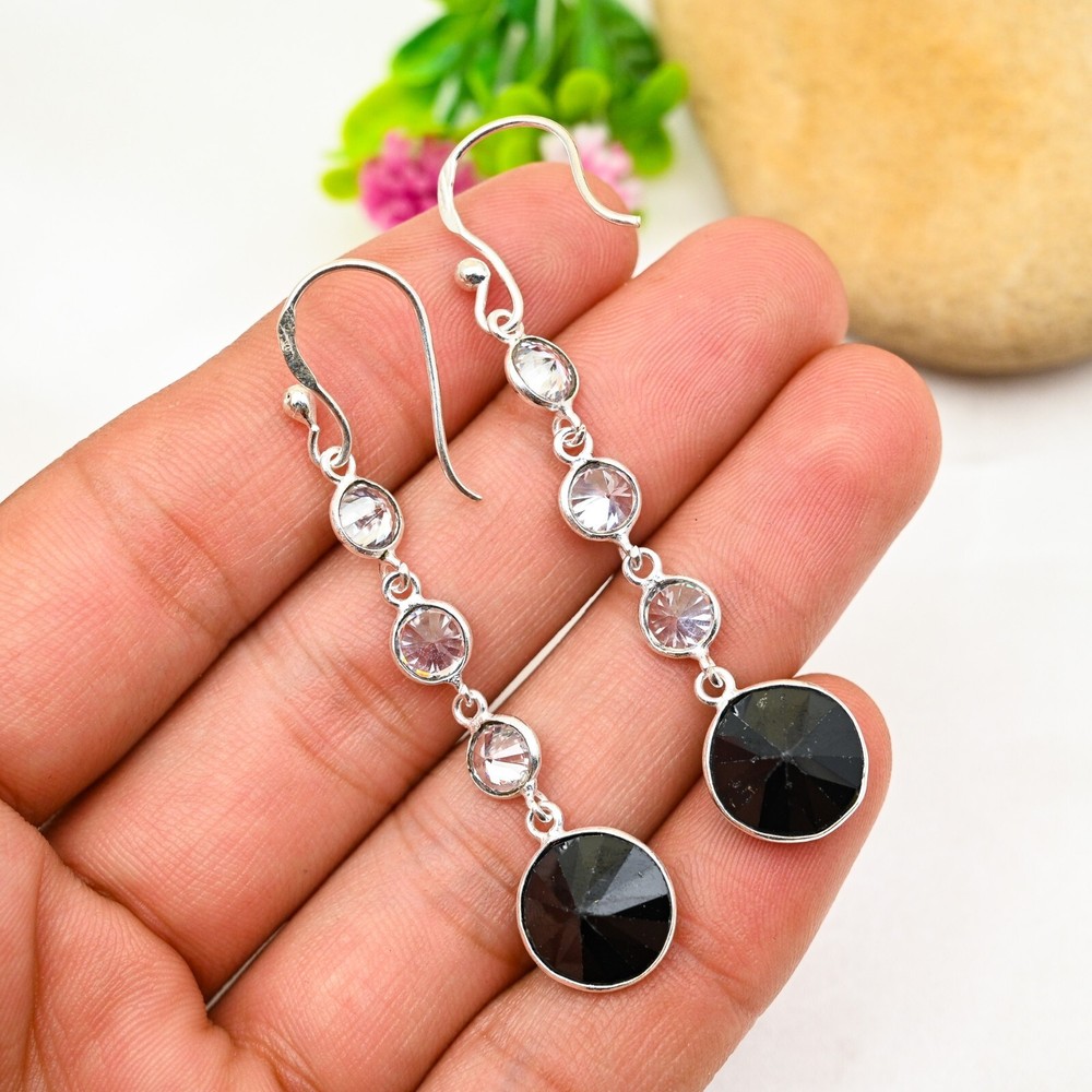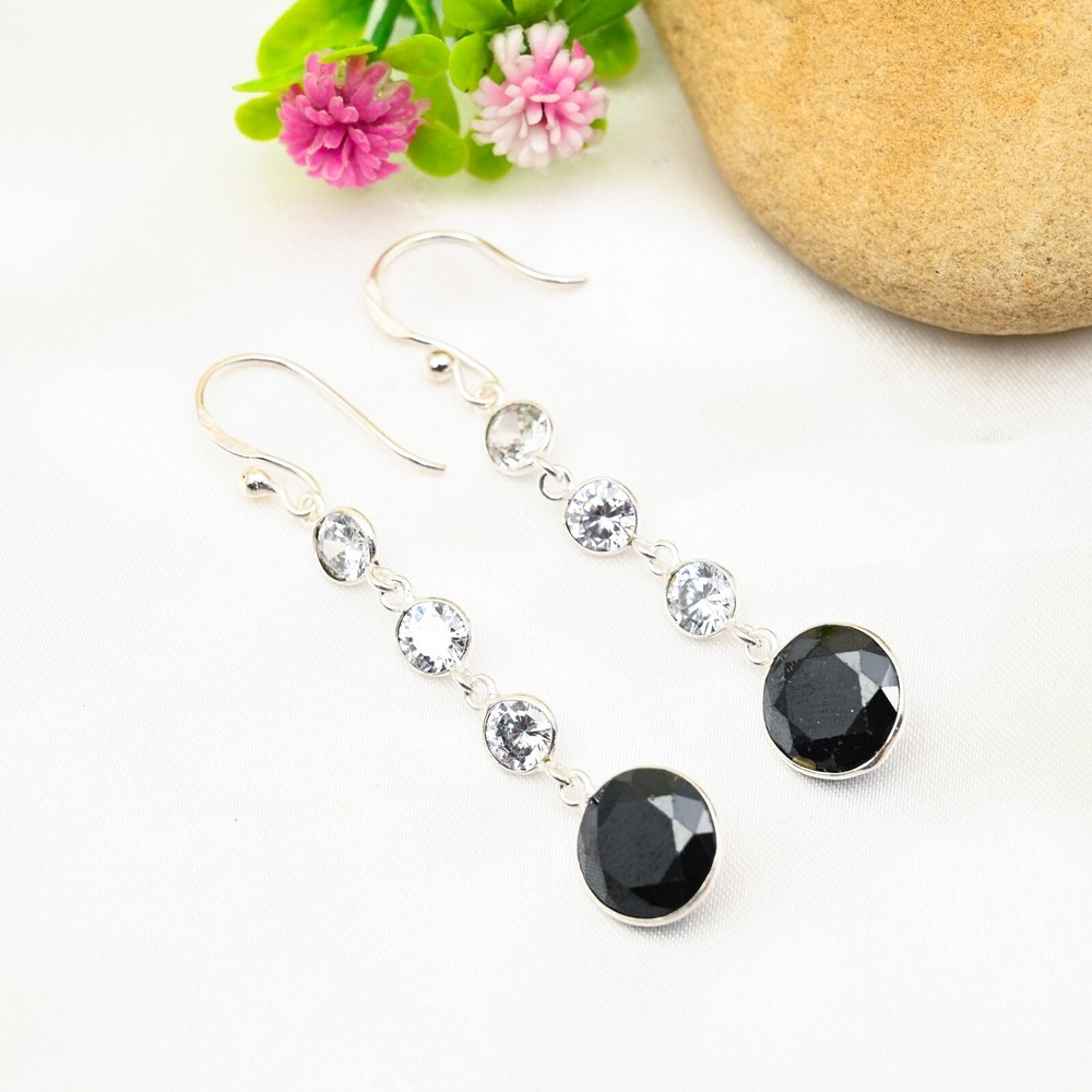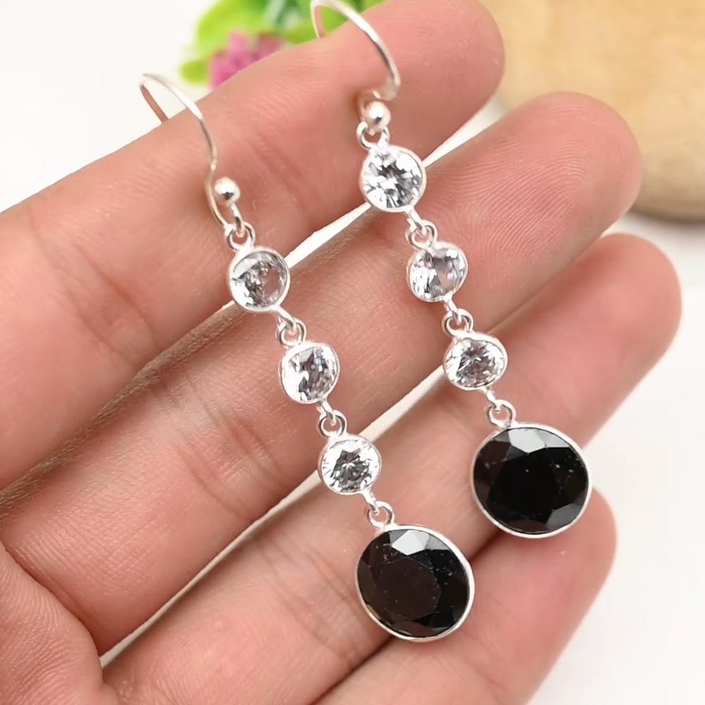 White Topaz, Black Onyx Gemstone Earring 925 Sterling Silver Handmade Jewelry
