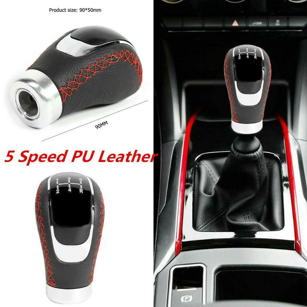 Black PU Leather 5 Speed Manual Gear Shifter Shift Lever Knob Cover For Car SUV Feature: 100% brand new and good quality Black leather with Red stitch Come with 3 hoses (8mm, 10mm, 12mm) Directly replace of original shift knob, no modification needed Universal fits for most vehicles Specifications: Material: Aluminum and Black leather with red stitch Body Color: Black Stitch Color: Red Shift Knob Hole: 8mm, 10mm, 12mm Note: this shift knob only fits for circular gear lever. Package Includes: 1x Leather Gear Shift Knob 3x Plastic Hoses (8mm,10mm,12mm) 1x Hex key 4x Screws eBay Cross Border Trade powered by ChannelEffect