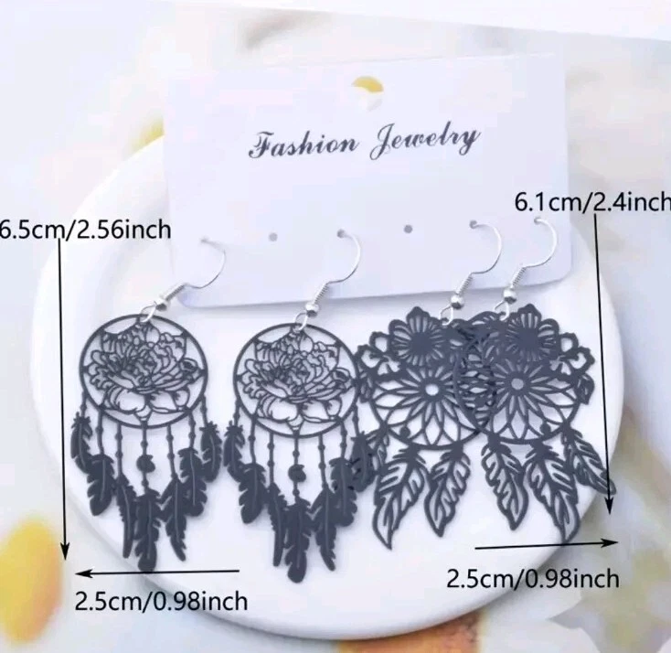 These beautiful black peony feather tassel earrings are the perfect addition to any bohemian or fashion-forward jewelry collection. The asymmetrical design with a hook closure and hollow drop style gives them a unique and dreamy look. The earrings are made of nickel-free zinc metal and feature a dream catcher theme, making them a perfect gift for any fashion-savvy friend or loved one. The earrings are sold by the brand DREAM and come with a seller warranty for added peace of mind. They are not antique or vintage, but they are sure to make a statement. These earrings are perfect for everyday wear or for special occasions. Add them to your collection today!