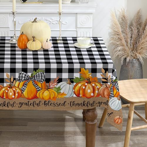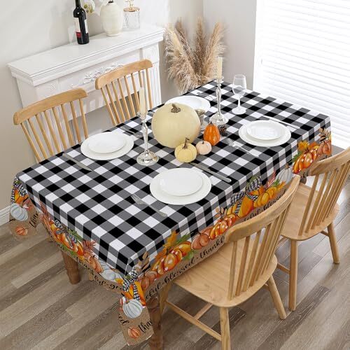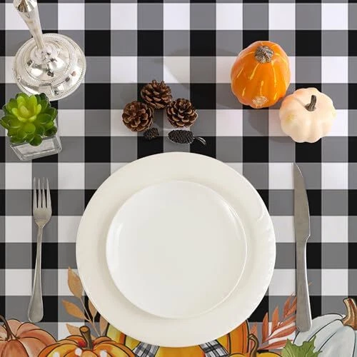 This Thanksgiving tablecloth is a total game-changer! The black plaid with pumpkin design adds the perfect cozy, festive touch to our dining table. It’s super soft yet durable, and the water-resistant coating is a lifesaver for spills. Fits our table perfectly (seats 6-8) and looks even better in person. Fast shipping and great quality—highly recommend for any fall gathering!