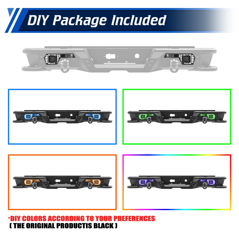 Store Categories Other Car Refrigerator Front Bumper Rear Bumper Fender Flares Inner Fenders Side Steps Running Board A-Pillar Light Mount Brackets Headlights Taillights Fog Lights LED Headlights LED Taillights LED Fog Lights Jeep Chevrolet Ford Toyota Dodge GMC About this item 🚙 【Off-road Rear Bumper Compatibility】Rear bumpers can make or break your truck's limits for off-roading. This rear bumper will be compatible with 2007-2018 chevy silverado 1500 and for 2007-2018 GMC Sierra 1500. 🚙 【Modern Convenient Design, Retain all OEM Features】There are built-in steps on the sides of the rear bumper, equip the bumper with 2 D-ring shackles & 1 Pair 4'' led pod lights that be ready for any situation. Retain all OEM features with the rear bumper. Not only is the bumper compatible with the factory hitch, but it also retains the OEM parking sensors and factory blind spot module sensor. 🚙 【Carbon Steel with E-coating, Longlife and Easy to Clean 】The rear bumper is constructed of 3/16” carbon steel sheet, that has been precisely welded for an accurate fit and stout protection for 2007-2018 chevy silverado 1500. To ensure it is corrosion-resistant, enhancing its looks and lifespan, its finish features anti-corrosion textured powder coating. 🚙 【Bolt-on Installation, Easy and Convenient】The package includes all the parts and bolts needed for installation. Easy bolt-on install with product instruction and hardware that come with bumpers. No drilling or modifications required to silverado/ sierra pickup. 🚙 【Package & Support 】The package includes: 1 x Rear bumper/ 2* Shackles/ 2* Led Pod Lights/ All mounting hardware. 📢📢 Please feel free to contact us via message center if any question. We always stand behind these products and are committed to providing responsive customer service. (Reply within 24 hours) Vehicles Fitment 🚙 For 2007-2018 Chevy Silverado 1500 🚙 For 2007-2013 GMC Sierra 1500 🚙 For 2014-2018 GMC Sierra 1500 Main Specification 🚙 Color: Black 🚙 Include: Mounting Hardware 🚙 Finished surface: Anti-corrosion textured Steel powder coating. 🚙 Type: Rear Bumper 🚙 Material: Q235A 🚙 Package Dimensions: 33.46 * 33.46 * 13.39 inch 🚙 Package Weight: 80.47 lbs 🚙 Product Dimensions: 78.3 * 13.8 * 10.1 inch Package Included 🚙 1x Steel Rear Bumper 🚙 2x Rear LED pod lights 🚙 2x D-Ring Shackles 🚙 1* Set of Mounting Accessories Payment Delivery details Terms of sales About us Contact us Payment We accept PayPal, credit card , Apple Pay & Google Pay etc. Delivery details All items will be shipped within 1-3 business days after payment received, we will try our best to ship out as soon as we can, hope for your understanding. Please double confirm your address and contact information, which will help the delivery faster and more accurately. Note :buyers who purchase international products need to pay import tariffs!!! Terms of sales Professional installation is highly recommended. Any problem of the item please feel free to contact us first , please D o Not leave negative feedback before that, or simply return it within 60 Days in original condition. We will resolve it for you ASAP. About us Any questions please do not hesitate to contact us directly by eBay message . We will reply you within 24 hours asap, thanks for your understanding. Contact us Should you have any problem or require any further information please feel free to contact us . If you are satisfied with our product and service, please kindly leave us a positive feedback. Popular Categories On Mar 14, 2025 at 20:42:06 PDT, seller added the following information: