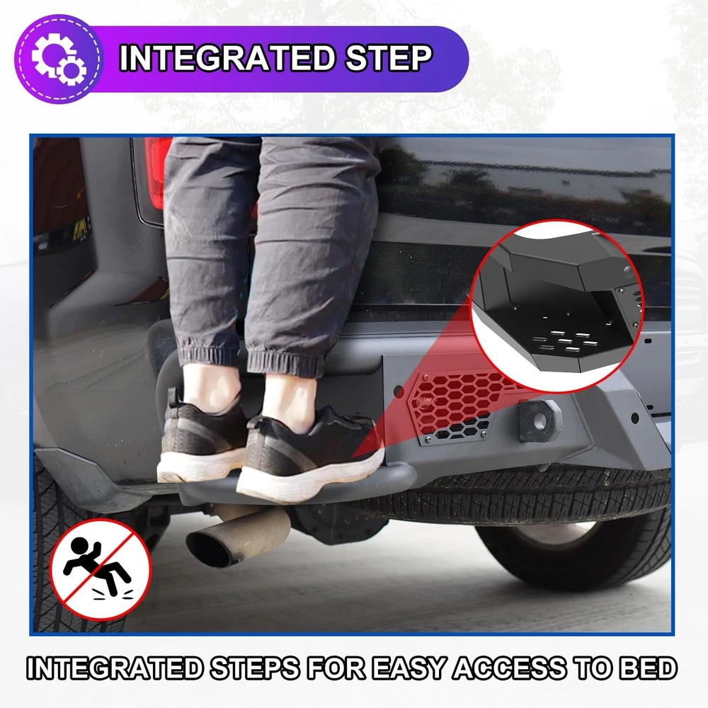 1. This heavy-duty rear bumper is a game-changer for Chevy Silverado and GMC Sierra owners! The sleek black finish looks aggressive, while the built-in corner steps make loading and accessing the bed super convenient. Perfect for off-road adventures, it adds serious durability without sacrificing style. Installation was straightforward, and the fit is spot-on for 2007-2018 models. Love how it upgrades both function and appearance—total win!