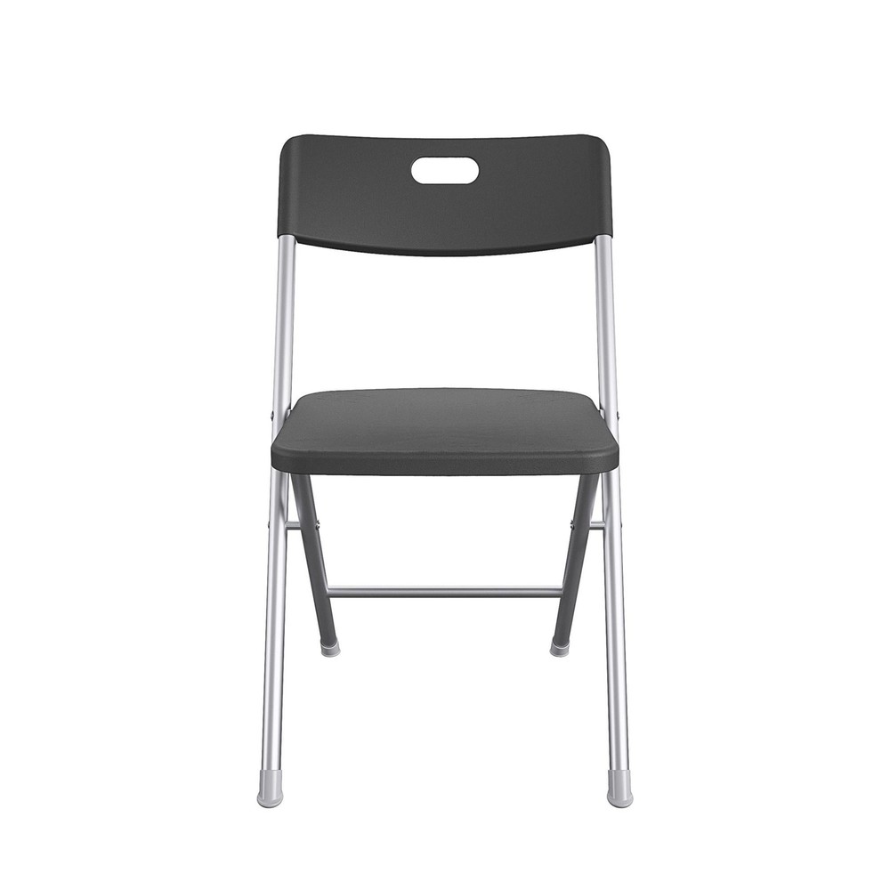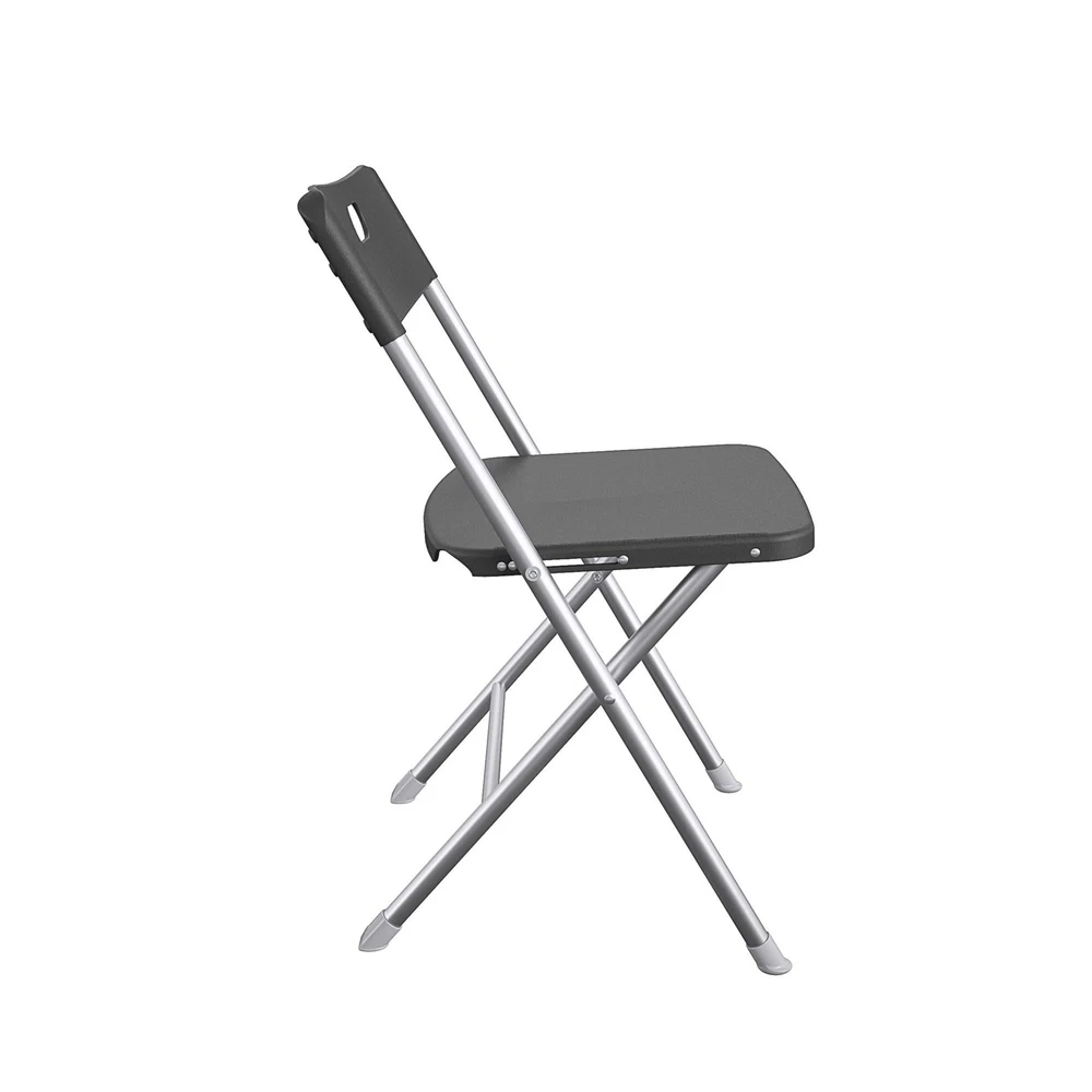 This folding chair is a game-changer! The sturdy steel frame holds up well, and the resin seat is super easy to clean—perfect for both indoor and outdoor use. Lightweight yet durable, it’s great for parties, everyday seating, or even extra office chairs. The sleek black design blends with any decor, and the comfort is surprisingly good for a folding chair. Highly recommend for anyone needing versatile, reliable seating!