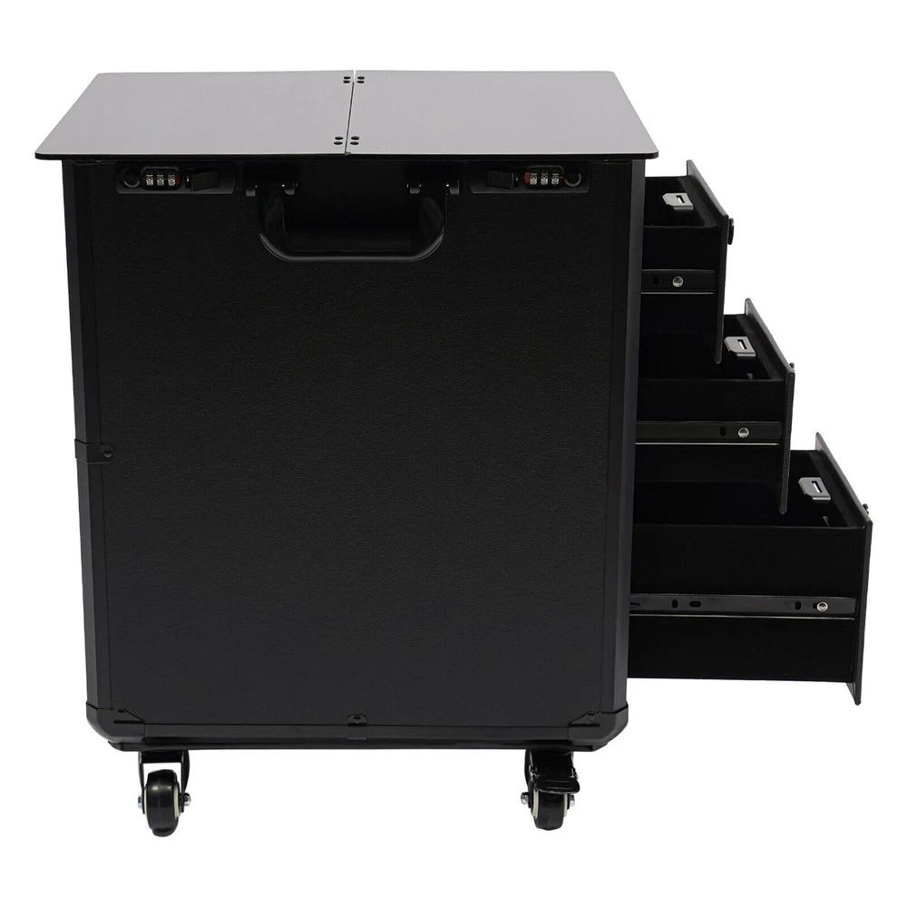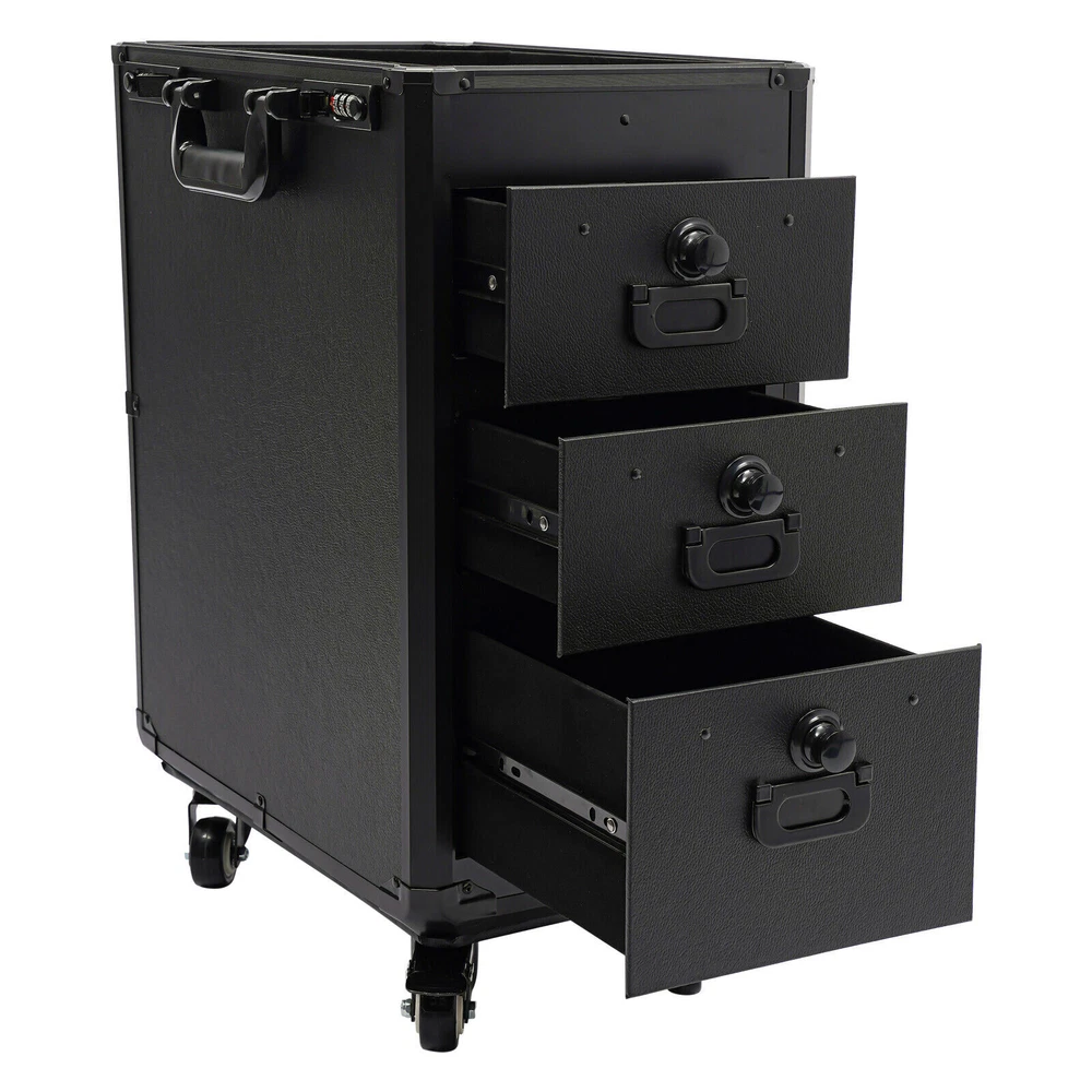 Black Rolling Makeup Case 4 Wheels Travel Cases Makeup Case+Combination Lock Rolling Makeup Case, Makeup Case with 4 Universal Wheels, Makeup Case with Combination Lock Description Do you want luxury and durability at work or at home? You can find it here! The rolling makeup case is made of high-quality materials, sturdy and durable. The large capacity of the three-drawer design allows you to partition and store different cosmetics, hair tools, and more. With the minimalist style, universal wheels, 2-gear retractable pull rod, and comfortable handles, it makes your daily make-up work more convenient. Key Features Premium Materials : This product is made of high-quality manganese steel, acrylic, and PU, which is corrosion- resistant , wear- resistant , and not easy to fade, ensuring a long service life. Freestanding Workstation : This product includes a removable tripod with a top soft cushion to be used as a hand bracket for your nail polishing or more. The height can be adjusted with a knob for added convenience. The acrylic panel on the top of the case also allows you to place some work necessities for easy access. Categorized Storage : This product is designed with three side drawers and a top compartment, allowing you to organize products of different functions and sizes such as perms, hair curlers, brushes, cosmetics, scissors, and other essentials while making it easy to find the items you want quickly. Outstanding Load Capacity : The rectangular structure and high-quality materials give the case an excellent weight capacity (up to 44.09 lbs). You can put all your hair and beauty tools in it with confidence. Flexible Movement : The easy-to-move silent universal wheels (2 with brakes), 2-gear telescopic pull rod, and a case body handle make it easy to move the case up and down stairs, in and out of the car, and in the lift. High Privacy : The three-digit combination lock design allows you to freely combine the digits according to your preference, which can protect valuables inside the case and maximize your privacy. Simple and Generous : The pure black color, three-dimensional structure, and smooth lines give the product a modern feel. Such a beautiful makeup case can nicely decorate your dressing room and make a good impression when you are out at work. Exquisite Gift : The exquisite design and large capacity make this product a great gift to your mother, girlfriend, sisters, wife and loved ones engaged in the makeup industry. Protective Package : To prevent the product from being damaged during transportation, we packed it with a sponge to protect your products to the maximum extent possible. Details Wide Opening : With a wide opening, it is easy for you to store and retrieve certain items without messing up other items in the drawer. Comfortable Handles : The handles on the drawers allow for a secure and comfortable grip, allowing you to open and close the drawers easily. Wrapped Corners: They can better protect the product from wear and collision, thus extending its service life. Application It is recommended for make-up artists from beginners to professionals such as freelance make-up artists, wedding make-up artists, celebrity make-up artists, and make-up interns. It can also be used for traveling or kept at home for makeup enthusiasts, hair barbers/stylists, nail technicians, estheticians, embroiderers, and crafters. Specifications Material: Manganese Steel, Acrylic, PU Color: Black Style: Modern Shape: Rectangular Assembly Required: Yes Mounting Type: Floor Standing Wheel Type: Universal Wheel(With Two Brakes) Carrying Method: Hand-held, Hand-pulled Load Bearing Capacity: 20kg /44.09lbs Number of Side Drawers: 3 Pull Rod Adjustable Height: 13-38cm/5.12-14.96in Overall Product Size: 42*28*53cm/16.54*11*20.87in Package Size: 72*48*33cm/28.35*18.9*12.99in Gross Weight: 14.2kg/31.31lbs Net Weight: 13kg/28.66lbs Package Included 1*Rolling Makeup Case 1*Multilingual Manual Feature 2 High Quality with Warranty Brand Unbranded Feature 1 Compact Design,Unique Appearance Shape Rectangular Plug Type US Standard Mounting Type Floor Standing Wheel 4 Universal Wheel (With Two Brakes) Carrying Method Hand-held, Hand-pulled Load Bearing Capacity 20kg /44.09lbs Number of Side Drawers 3 Pull Rod Adjustable Height 13-38cm/5.12-14.96in Overall Product Size 42*28*53cm/16.54*11*20.87in Type Lipstick Case Color Black Material Manganese Steel, Acrylic, PU Features Adjustable, With Lock, Tiered MPN Does not apply Item Weight 13kg/28.66lbs