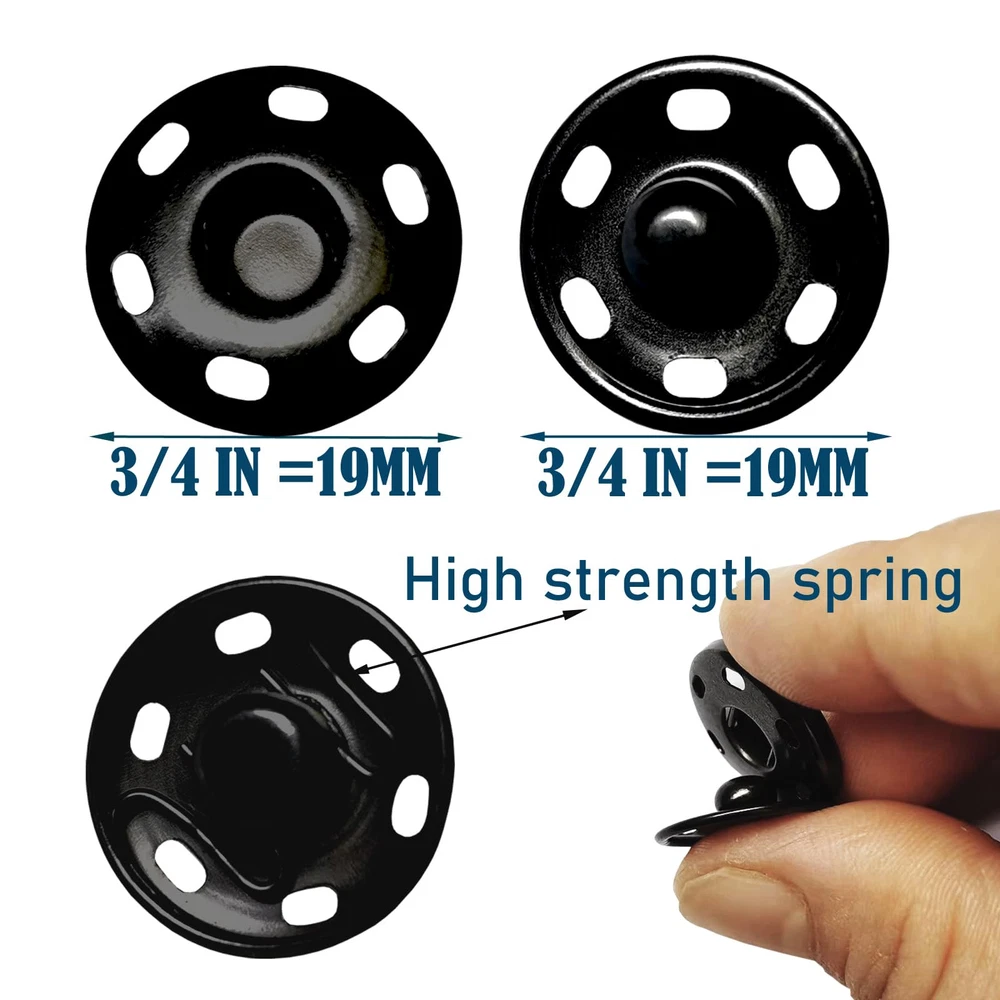 Basic sew on snaps (broches de presión para ropa) for your daily use 50 Sets Sew on Snap Buttons, Metal Snaps Fasteners Press Studs Buttons for Sewing Clothing, 19mm (black) JOSDIOX is continually seeking to offer you the best products available - Sew-On Snaps, that you are getting a well-made product for an excellent value. sewing snaps Specification: Diameter: 3/4" (19mm) Color: Black 50 sets de coser en los botones de ajuste de 3/4 pulgada (19mm) en negro Suitable For The Scene: clothing, hat, bag, jackets, jeans, clothing, coat, shirts, down jacket, overalls, windbreakers, leather craft, backpacks, DIY craft or other sewing and household projects ect, which you can easy use at home by your selves. If you have any questions after purchasing our Snap Fasteners sets, please contact us. E-Uli store provide 100% satisfactory service,you can return and get 100% money back if there is anything problem about our products. Note: Small items, please keep away from children. ❤1. Sew-on snap quantity : Total 50 sets in black . Enough quantity for your home using . 50 ensembles cousus sur boutons pression 3/4 pouces (19mm) en noir ❤2. Snap buttons size: The diameter is 3/4 inch (19 mm). Please kindly check what size you need before you buy, The snaps for sewing is beautiful large snaps, huge, well made. Easy to sew on by hand and they are very stable. Which is what you needed for some of your sewing projects. They work for your designs. ❤3. Sewing snaps design: Each snap button contains 2 parts, male and female parts, easy to install, and these 2 parts can buckle together ,these heavy duty snaps for thick fabric. ❤4.Sew on snap buttons material: The snap button for clothing made of good quality metal and high-quality spring , which is hard, sturdy and not easy to get erosion and rust, with smooth surface, they are tight and won't come apart, convenient for you to use in the daily life. ❤5.Snaps for sewing wide applications: These big snaps for sewing works great for all kinds of projects - clothing, coat, hats, jeans, down jacket, shoes, jackets, overalls, windbreaker, backpacks, bibs, embroidery towels, leather craft,barbie doll clothe, DIY craft or other sewing and household etc.