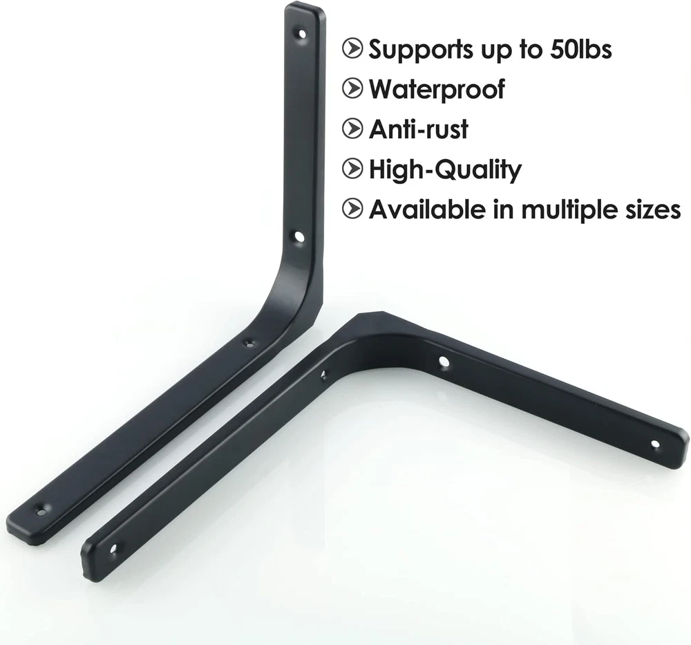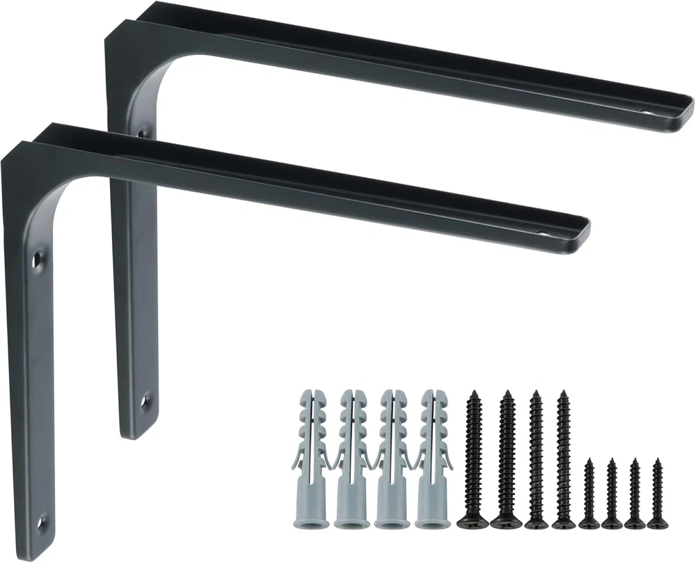 Store New Arrivals Add to Favorite View Feedback Contact Black Shelf Bracket, 12 Inch L Shape Wall Bracket Heavy Duty Metal Bracket Hanging Angle Brackets Shelf Support, 2 PCS Description Item model number 5f73f5ec-78a7-4c86-b0e2-c6d5dff6668e Item Weight 1.26 pounds Batteries Required? No Finish Matte Black Mounting Type Wall Mount Color Black Country of Origin China Product Dimensions 11.81 x 9.84 x 1.18 inches Item Depth 10 Item dimensions L x W x H 11.81 x 9.84 x 1.18 inches Installation Method Wall-Mounted Batteries Included? No Finish Type Matte Black Size 12 x 10 Inch (2 PCS) Iron 【Shelf Support Size】--300 x 250 x 30 mm/ 12" x 10" x 1.2" (L*W*T) 【Strong load-bearing capacity】--The heavy duty bracket is made of high-quality heavy-duty steel, resistant to bending and breaking, and the thickened L-shaped design provides you with greater stability. A pair of L brackets can support up to 50 pounds. 【Unique curved surface design】--Shelf hardware’s smooth curved edges protect your hands and walls. The beautiful look is the perfect decoration for the modern minimalist style. Imagine a clean, clutter-free space where you can display decorations, tableware, etc. on the shelves hanging on these shelf supports. 【Easy to install】--The package includes the accessories you need, the bracket package includes 2 black L-shaped brackets, 4 long screws, 4 short screws, and 4 rubber particles. Only come with Brick & Concrete Anchors, and do not come with Drywall Anchors. 【WIDE APPLICATION】--Metal shelf brackets are suitable for home, living room, kitchen or bathroom, indoor or outdoor. The wall brackets for shelves also can be used for DIY bookshelves, wall shelf storage cabinets, garage heavy duty shelving. Product Description The video showcases the product in use. The video guides you through product setup. The video compares multiple products. The video shows the product being unpacked. HIGH QUALITY Nice Material These shelf supporter are made of solid high quality iron that possess good hardness and high strength,not easy to bend. High Temperature Spray Paint Process lt ensures the quality and longevity in humid weather & the appearance is elegant. STRUCTURE One-piece Style By adopting whole shaped technology, the product has the characteristic of high intensity and durability. Rounded Corner Design Safe and don't scratch your hands. REFERENCE DATA TABLE SUITABLE FOR VARIOUS SPACES Bathroom/Bedroom Kitchen Garden/Balcony Office/Living Room MORE SAYAYO BRACKETS Add to Cart Add to Cart Add to Cart Add to Cart Add to Cart Add to Cart Customer Reviews 4.5 out of 5 stars 1,701 4.5 out of 5 stars 41 4.6 out of 5 stars 84 4.6 out of 5 stars 84 4.6 out of 5 stars 56 4.5 out of 5 stars 305 4.2 out of 5 stars 114 Price $9.99 $ 9 . 99 $17.09 $ 17 . 09 $16.99 $ 16 . 99 $15.99 $ 15 . 99 $16.99 $ 16 . 99 $8.99 $ 8 . 99 $9.99 $ 9 . 99 Material Metal / Stainless Steel Metal Stainless Steel Metal Stainless Steel Stainless Steel Metal Item Dimensions 4"L x 4"H x 0.8"T 7"L x 4"H x 1.2"T 4.72"L x 4.72"W x 0.8"T 4.72"L x 4.72"W x 0.8"T 3.86”L x 1.26”W 1.1”Lx 1.1"W x 0.79"H 1.02”Lx 0.51"W Finish Black / White / Brushed Nickel Black Matte black Matte black Matte black Polished Chrome Polished Chrome Quantity 2 / 4 / 6 / 10 / 12 / 20 Pcs 4 Pcs 8 / 10 Pcs 6 Pcs 6 Pcs 4 / 8 Pcs 20 Pcs Installation Method Screw fixing Screw fixing Screw fixing Screw fixing Screw fixing Screw fixing Drill the hole for inserting ABOUT US We offer the best prices around on high quality products. Our E-store includes media such as books, movies, music and games while offering electronics, toys, sporting apparel, clothing, tools, general home, garden items and more. SHIPPING We are always working hard to ensure your package arrives as soon as possible. Please understand that some factors like weather, high postal traffic, and the performance of shipping companies are outside of our control. We offer free shipping to the lower 48 states and ship within 2 business days of payment, usually sooner. We do not accept P.O. Boxes. Please provide a physical address. For shipping outside of the continental USA, we only use eBay's Global Shipping Program.The item is shipped to KY and then sent to the rest of the world. International customers are responsible for all duties and taxes. Continue to check out in order to calculate costs for shipping the item to your country. Messages regarding eBay's Global Shipping Program MUST be directed at eBay EXCLUSIVELY. RETURNS We offer a 30-Day Return Policy on items which you are not completely satisfied with. You have the option for a full-refund or an exchange of the item. No returns are available on items shipped outside of the USA. PAYMENT We accept PayPal. CONTACT US This page content is yet to come Please ad us to your favorite seller and visit again later Thank You CUSTOMER SATISFACTION We try our very best to make sure every customer is completely satisfied. If there's a problem, message us! We're happy to help. WE ACCEPT Copyright © 2021 AutoDS. | All Rights Reserved