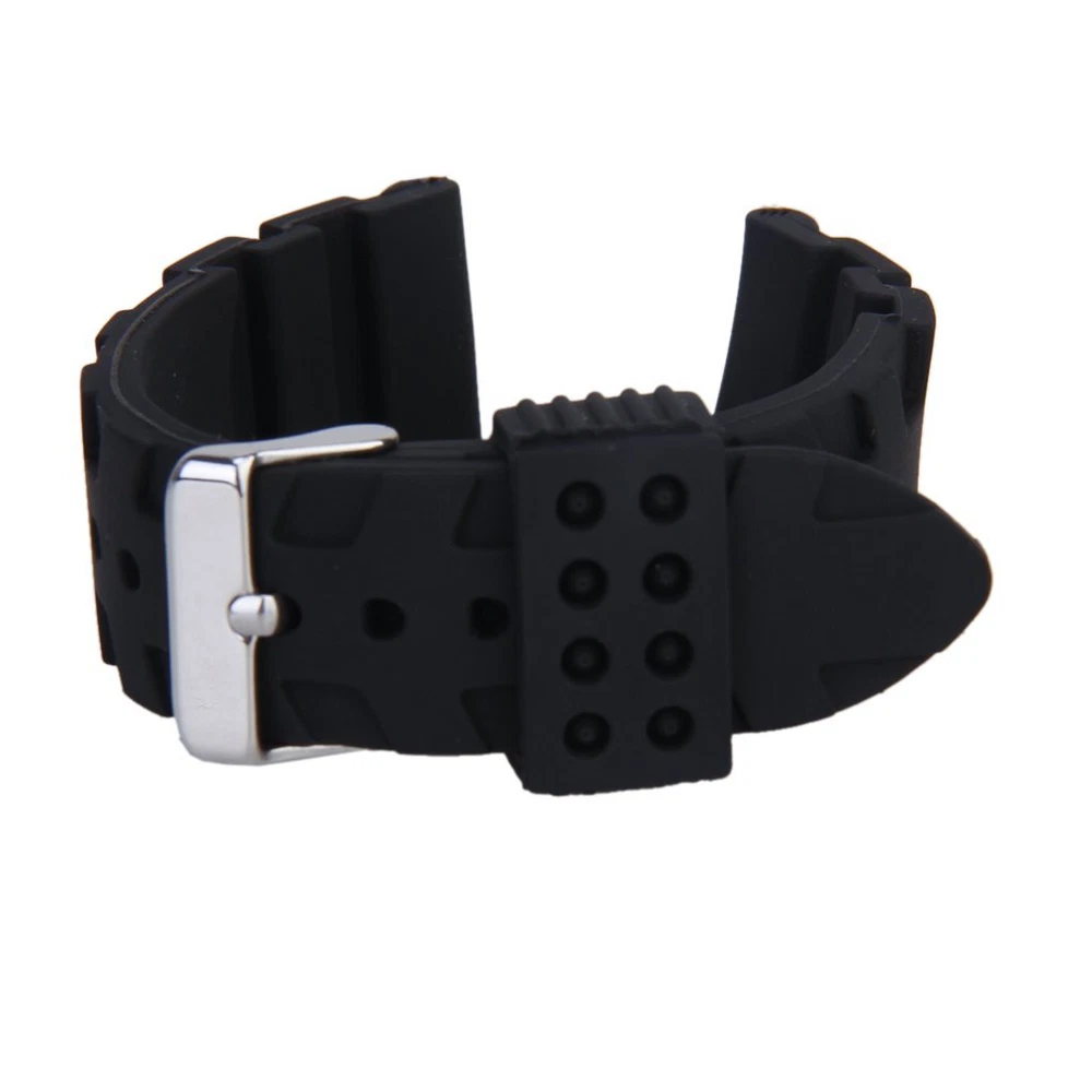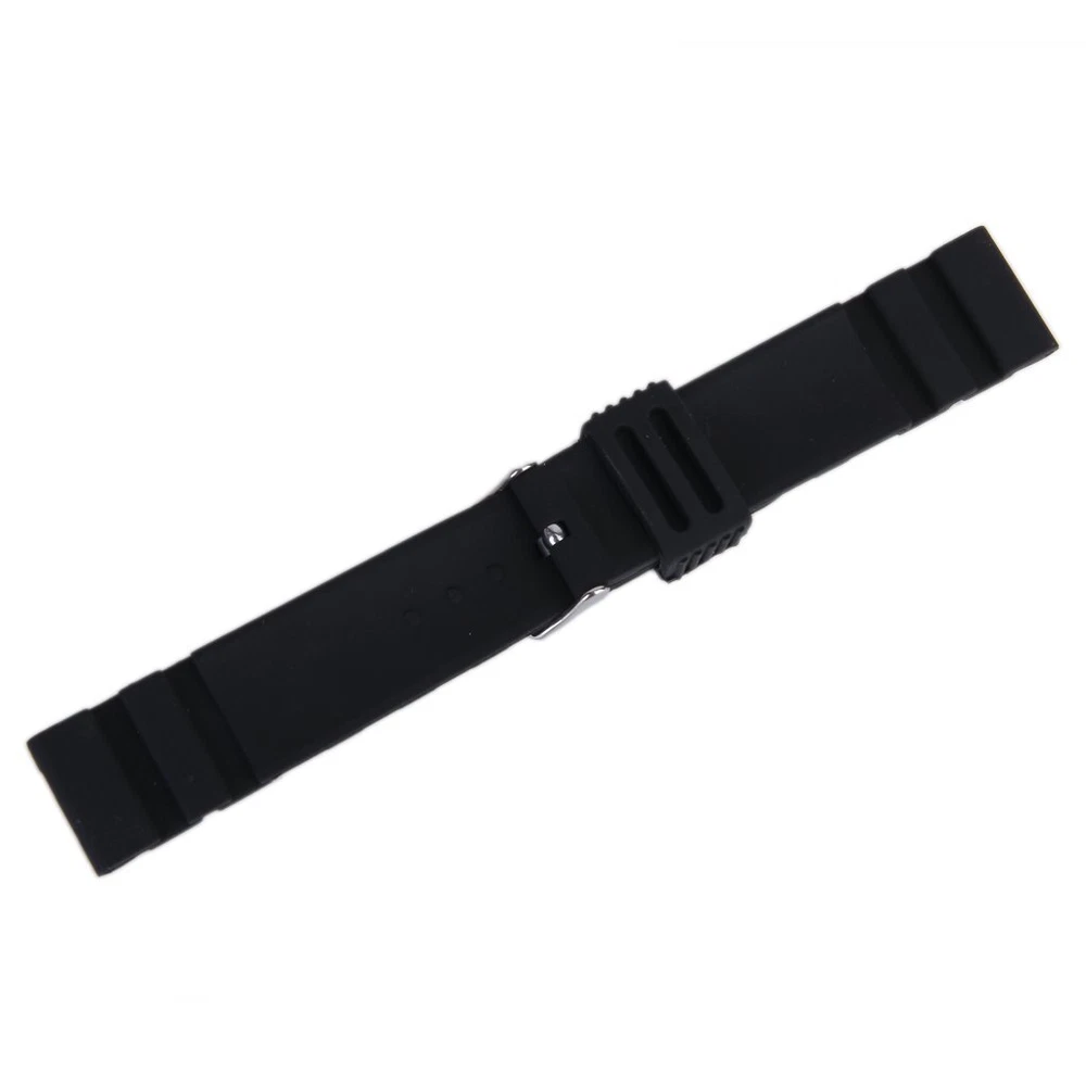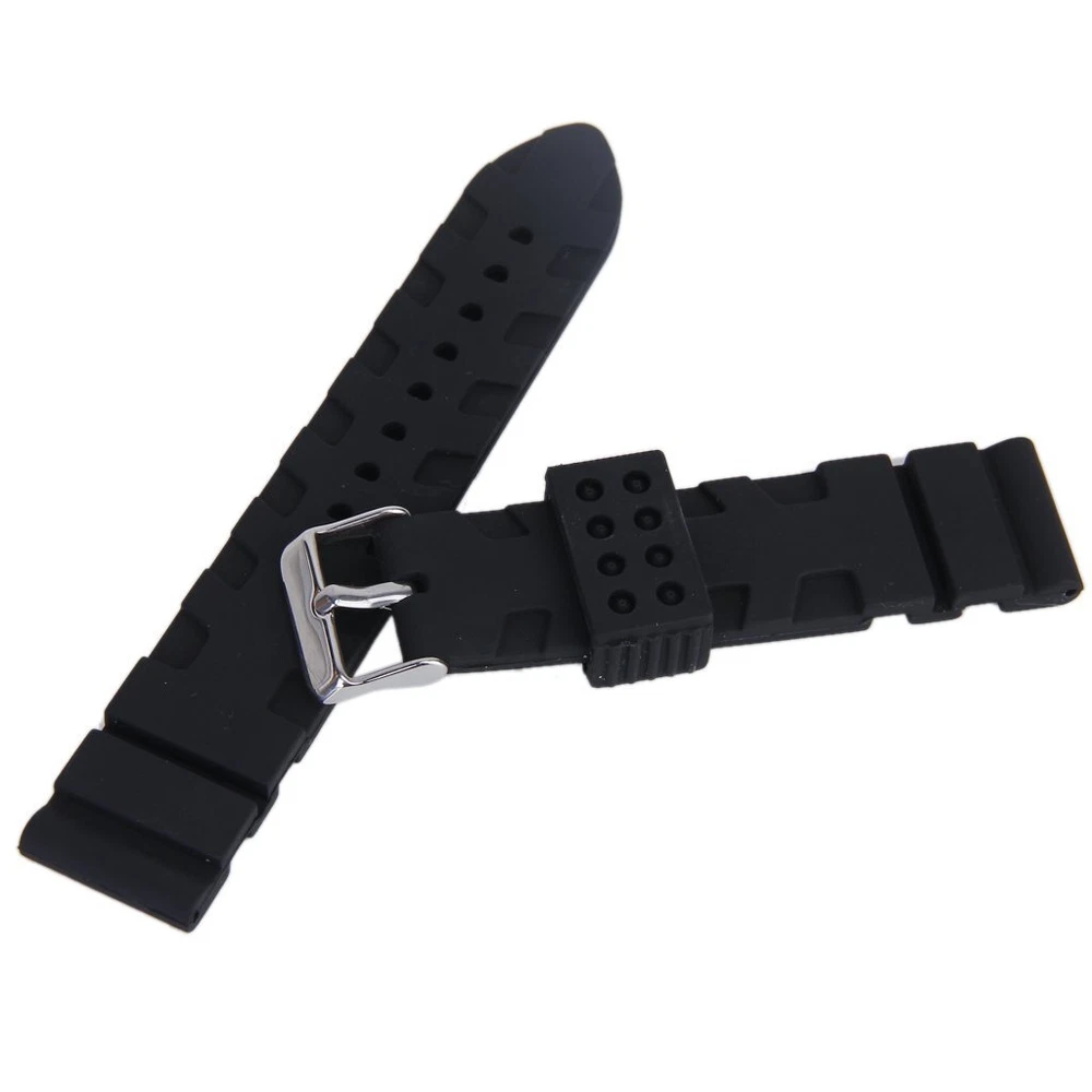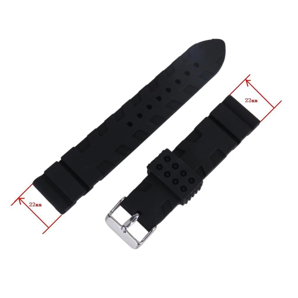 Black Silicone Rubber Watch Bracelet Band Curved Stainless Steel Clasp 223743 {LIS_PIC} Adjustable with stainless steel ends bent buckle Waterproof, ideal for sports and diving watches Total length: . 8.27 inches/ 21 cm Width: . 0.87 inches/ 22 mm Band Material: Silicone Buckle Material: Stainless steel Color: Black Quantity: 1 piece 22 mm package contents: 1 x Rubber Watch Bracelet Note:Light and different displays may cause the color of the item in the picture a little different from the real thing. The measurement allowed error is +/- 1-3 cm.