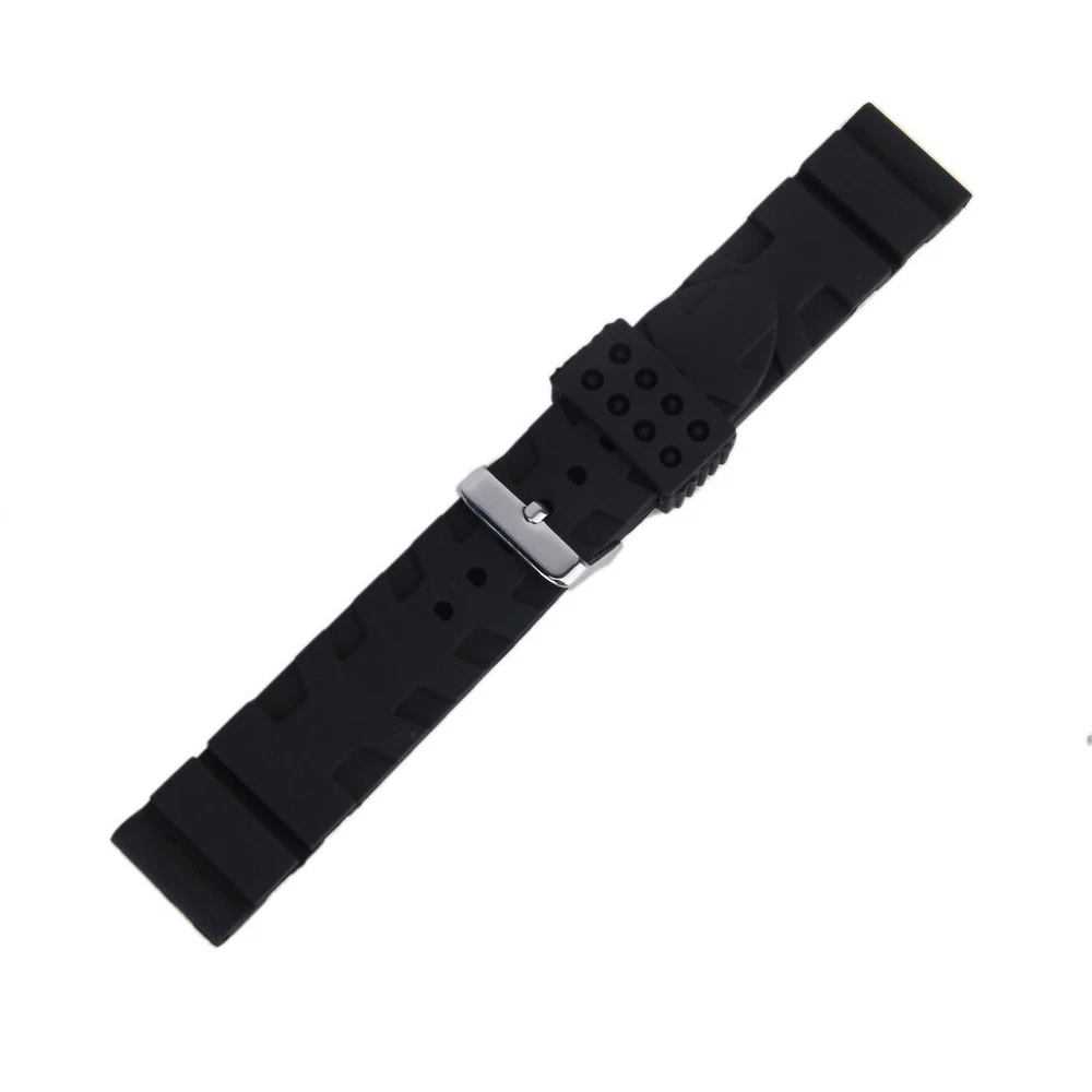 Black Silicone Rubber Watch Bracelet Band Curved Stainless Steel Clasp 224453 {LIS_PIC} Adjustable with stainless steel ends bent buckle Waterproof, ideal for sports and diving watches Total length: . 8.27 inches/ 21 cm Width: . 0.87 inches/ 22 mm Band Material: Silicone Buckle Material: Stainless steel Color: Black Quantity: 1 piece 22 mm package contents: 1 x Rubber Watch Bracelet Note:Light and different displays may cause the color of the item in the picture a little different from the real thing. The measurement allowed error is +/- 1-3 cm.