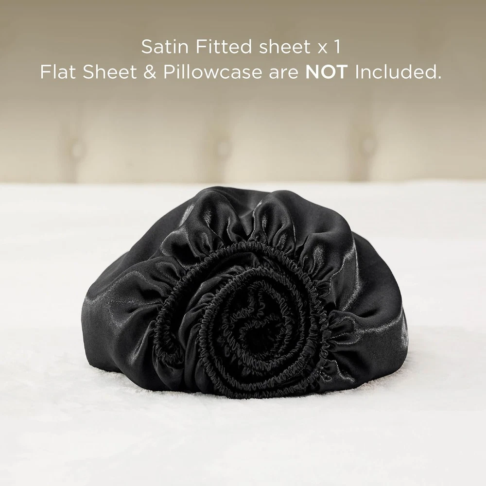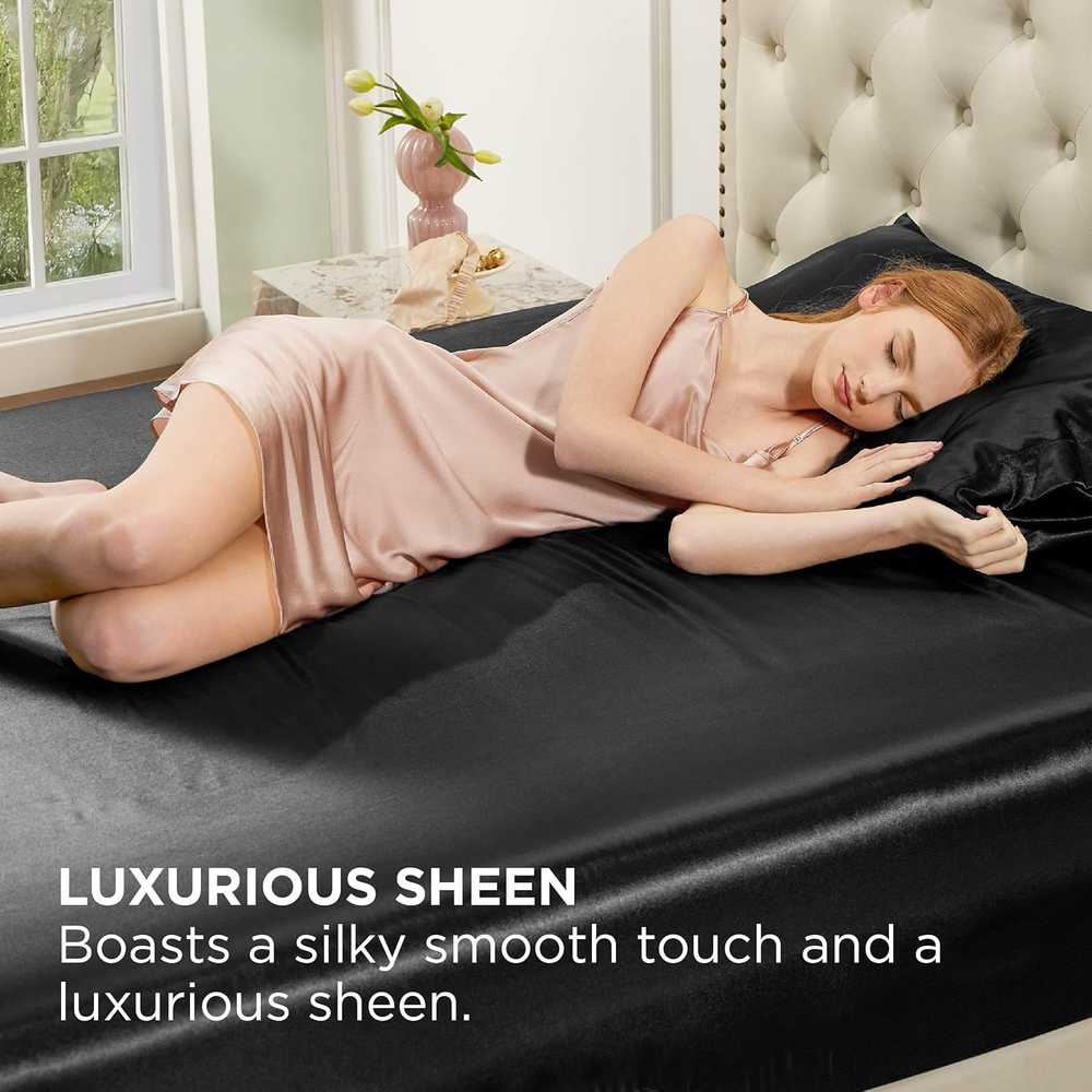 Store New Arrivals Add to Favorite View Feedback Contact Satin Fitted Sheet Queen Size - Black Silk Bed Sheet, Luxury & Ultra Soft, Non-Fading & Wrinkle Free, Good for Hair & Skin (Black, 60X80+15 Inches, 1 Piece) Description Item model number Satin Fitted Sheet Silky Fabric Weight 90 Grams per Square Meter Product Dimensions 80"L x 60"W Color Black Pattern Solid Fabric Type Satin Weave Material Polyester Country of Origin China Item Weight 1.25 pounds Size Queen Thread Count 228 Fitted Sheet Pocket Depth 15 Inches Product Care Instructions Easy Care: This satin fitted sheet is easy to care for. Machine wash at low temperatures on a gentle cycle to restore it to like-new condition. To ensure a better experience, avoid washing with sharp objects Silky Soft Texture: Made of premium polyester microfiber, Bedsure satin fitted sheet offers you extreme smoothness and softness. This fitted sheet is also gentle on sensitive skin, offering you restful sleep every night Hair & Skin Friendly: Features a smooth satin surface, Bedsure satin fitted sheet significantly reduces friction and minimizes hair breakage, fine lines, and wrinkles. It is gentle on both your skin and hair Tailored For Mattresses: This sheet set includes a fitted sheet with a 15-inch deep pocket to accommodate most mattresses, ensuring a smooth, secure fit Easy Care: This satin fitted sheet is easy to care for. Machine wash at low temperatures on a gentle cycle to restore it to like-new condition. To ensure a better experience, avoid washing with sharp objects What You Get: This queen sheet set includes a fitted sheet (60" x 80" + 15"); Flat Sheet & Pillowcase are NOT Included Product Description LUXURIOUS SATIN FEEL Made from 100% polyester microfiber satin, this fitted sheet offers a silky smooth texture, providing a luxurious sleep experience. SKIN & HAIR FRIENDLY The soft and delicate satin fabric reduces friction against skin and hair, aiding in hair and skin care. EASY CARE Machine washable and quick-drying, this fitted sheet is simple to maintain and retains its softness and shine wash after wash. Other Recommendations by Bedsure Add to Cart Add to Cart Add to Cart Add to Cart Add to Cart Customer Reviews 4.4 out of 5 stars 31 4.5 out of 5 stars 298,429 4.5 out of 5 stars 6,224 4.3 out of 5 stars 32 4.7 out of 5 stars 119 Price $15.29 $ 15 . 29 $6.99 $ 6 . 99 $12.59 $ 12 . 59 $24.99 $ 24 . 99 $15.99 $ 15 . 99 Features Silky,Soft, Breathable Silky,Soft, Breathable Deep Pocket, Soft, Lightweight Breathable & Crisp Soft Velvety Soft, Comfortable Material 100% Polyester 100% Polyester 100% Polyester 100% Prewashed Percale Cotton 80% Polyester, 20% Rayon Size Available Twin/Full/Queen/King Standard/Queen/King/Body Twin/Twin XL/Full/Queen/King Twin/Full/Queen/King Twin/Full/Queen/King Product Care Instructions Machine Wash, Do Not Bleach Machine Wash, Do Not Bleach Machine Wash, Do Not Bleach Machine Wash, Do Not Bleach Machine Wash, Do Not Bleach Machine Washable ✔ ✔ ✔ ✔ ✔ Available Color 5 + Colors 39+ Colors 11 + Colors 5 + Colors 3 + Colors ABOUT US We offer the best prices around on high quality products. Our E-store includes media such as books, movies, music and games while offering electronics, toys, sporting apparel, clothing, tools, general home, garden items and more. SHIPPING We are always working hard to ensure your package arrives as soon as possible. Please understand that some factors like weather, high postal traffic, and the performance of shipping companies are outside of our control. We offer free shipping to the lower 48 states and ship within 2 business days of payment, usually sooner. We do not accept P.O. Boxes. Please provide a physical address. RETURNS We offer a 30-Day Return Policy on items which you are not completely satisfied with. You have the option for a full-refund or an exchange of the item. No returns are available on items shipped outside of the USA. PAYMENT We accept PayPal. CONTACT US This page content is yet to come Please ad us to your favorite seller and visit again later Thank You CUSTOMER SATISFACTION We try our very best to make sure every customer is completely satisfied. If there's a problem, message us! We're happy to help.