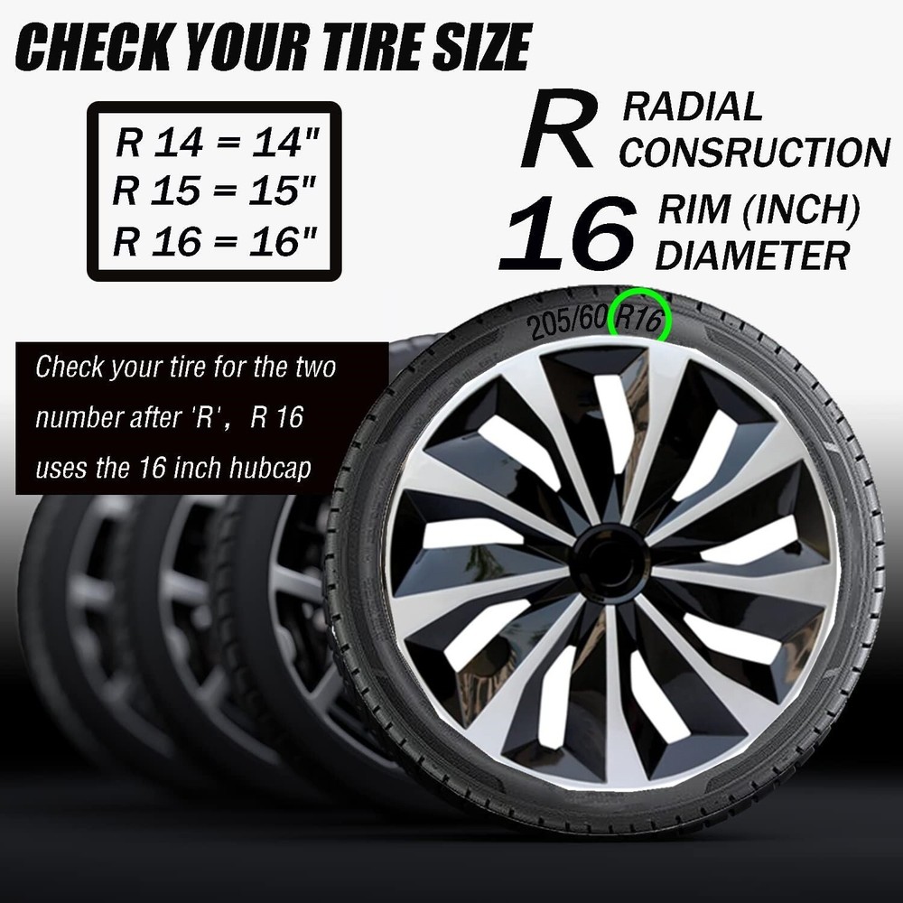 $ 24.73Fit R13 Tire 4 Pieces 13" Glossy Wheel Covers Full Rim Black & Silver Hubcaps
