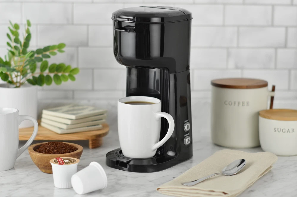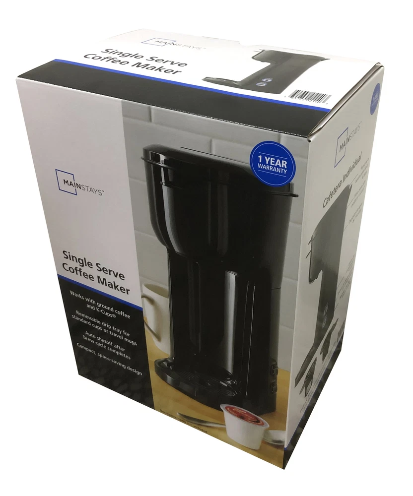 Custom Coffee in Minutes Dual Brew: Compatible with ground coffee or K-cups. 14 oz Reservoir: Holds 1.75 cups for multiple brews. Removable Drip Tray: Accommodates standard and travel mugs, easy to clean. Auto Shutoff: Automatically turns off after brewing. Compact Design: Space-saving and lightweight. Stylish Finish: Modern polished black plastic. Condition: New