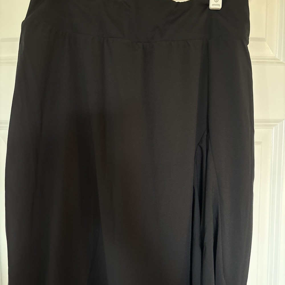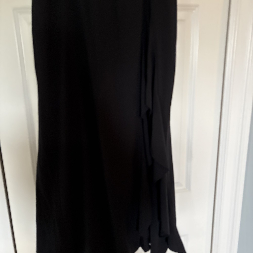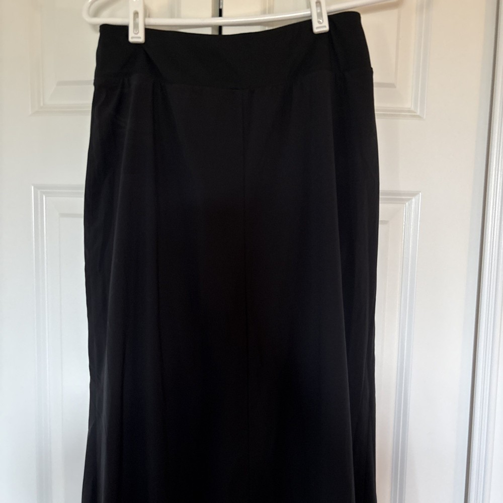 The product is a medium-sized black skirt with a slide slit and ruffle accents, suitable for casual occasions. Made from polyester, the skirt has a solid pattern and a maxi length of 39.5 inches, perfect for the summer, fall, and spring seasons. Machine washable and designed for regular sizing, this skirt is a stylish addition to any woman's wardrobe.