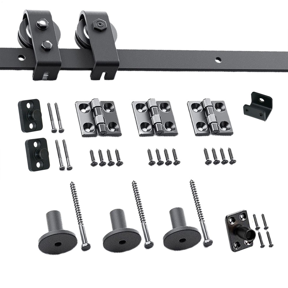 Sliding Barn Door Hardware Closet Track Kit,117cm,Folding Double Door,Black Bullet Points: Sufficient Quantity: With 3x Gasket, 3x Hinge, and a 1x Floor Guide, our Sliding Barn Door Hardware Track Kit ensures a smooth, silent motion for doors of 1-3/8"~1-3/4" thickness, complete with a durable seal. High-Quality Carbon Steel: Crafted from high-quality carbon steel, this Sliding Barn Door Hardware Track Kit features wear-resistant nylon wheel rollers and bearings, ensuring a high load capacity with a sturdy 6mm thick rail for durable, smooth operation. Simple Installation: Our Sliding Barn Door Hardware Track Kit ensures an effortless setup with user-friendly instructions and illustrations, helping you achieve a seamless installation without any hassle. Improved Efficiency: Our Sliding Barn Door Hardware Track Kit provides a quiet and smooth sliding system that saves your space. The folding door kit allows for a sleek design, giving you the most out of your room. Wide Range of Use: Transcending the boundaries of conventional installation, our sliding barn door hardware track kit provides a versatile solution for your living, dining, and study spaces' decor needs. Comes with 3x track, 2x roller, 2x roller swivel bracket, and 1x roller holder. Enjoy quiet and smooth sliding thanks to the high-quality bearings and nylon wheel rollers. Ideal for living, dining, and study rooms. Save time and hassle with easy installation. Specification: Name: Sliding Barn Door Hardware Track Kit Color: black Material: carbon steel Rail size: about 46 inches/116.84cm Track splicing mode: 3 pcs Applicable range: door thickness 0.5-50mm Packing List: 3x Track 2x Roller 2x Roller Swivel Bracket 1x Wheel Holder 3x Shims 3x Hinges 1x Floor guide 1x Sealing strip 1x Screw set 1x Instruction manual 4x pipe clamps 35mm 4x m8*90 wood screws Note: Due to different lighting and screen settings, the item color may be slightly different from the picture. Due to different manual measurements, please allow a 1-2cm difference in size. We accept PayPal payment,PayPal Credit,Credit card or debit card and so on. Payment should be completed within 4 (Four) days of auction closing. Or unpaid dispute will be filed for closing auction. We will leave a positive feedback immediately after payment is received. We appreciate a positive feedback as much as you do. If for some reason there is any issue with the purchase, please contact us prior to leaving feedback, we will be glad to work together and provide a satisfying solution. · Welcome to our eBay store. As a leading and emerging company in manufacturer and exporting business, we are specialized in Business and Industrial Products, Sporting Goods, Pet Products, Home and Garden products for more than 10 years. We believe that it is our vision and mission to provide innovative products with best service and competitive price to satisfy you. Our goal is to make sure that you can find exactly what you are looking for and make it easy for you to place your orders. · Email Customer Support: · 9:00am-2:00am PST Sunday-Friday All emails will be responded to within 12-24 hours