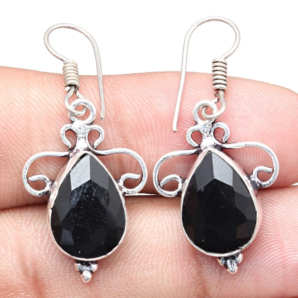 Black Spinal Gemstone Handmade Gift For Her Silver Jewelry Earrings 1.5''