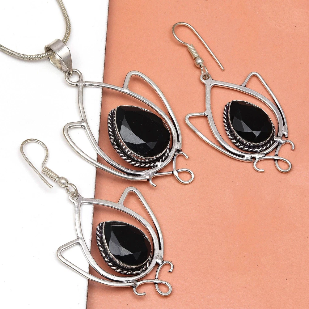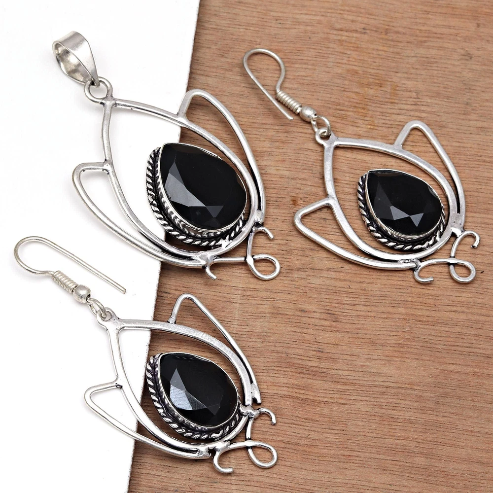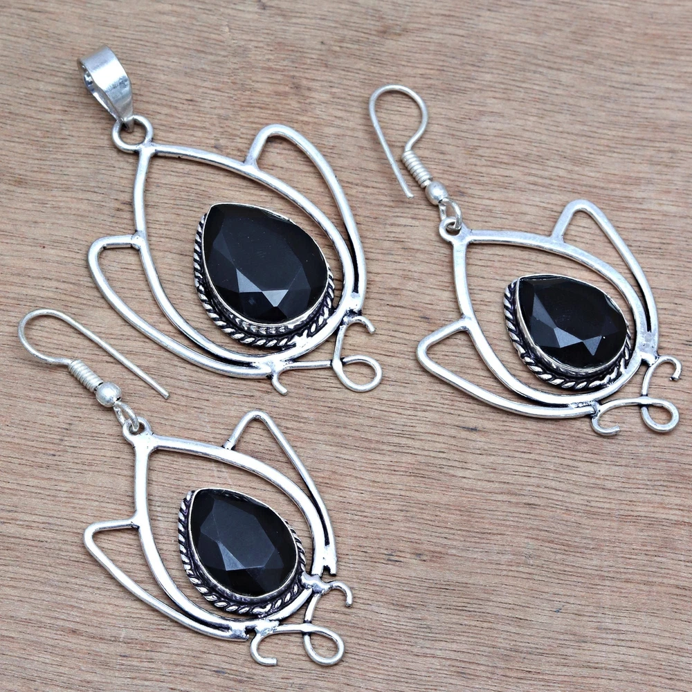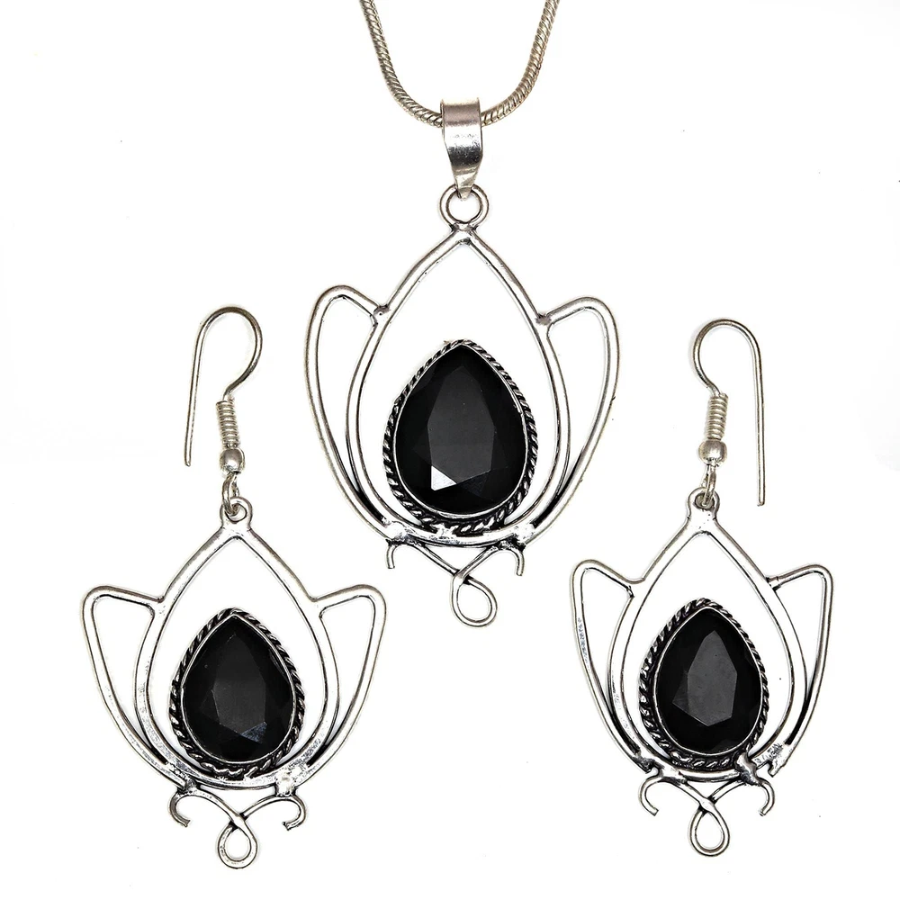 gtin13: does not apply Material: Crystal, Stone Main Stone: Black Spinal Features: Adjustable, Engraved, Stackable Theme: Beach, Beauty, Ethnic, Family & Friends, Halloween Antique: No Main Stone Colour: Black Color: Black Vintage: No Seller Warranty: No Colour: Black Metal Purity: Unknown Secondary Stone: No Stone Country of Origin: India Main Stone Treatment: Not Enhanced Gemstone Clarity Grade: Eye Clean Customised: No Wholesale: Yes UPC: does not apply Metal: Silver Plated Main Stone Color: Black Cut Grade: Excellent Main Stone Creation: Lab-Created Brand: Unbranded Set Includes: Pendant, Earrings Main Stone Shape: Pear Country/Region of Manufacture: India Base Metal: Brass Handmade: Yes Ring Size: Unknown Customized: No Type: Jewelry Set Occasion: Anniversary, Birthday, Christmas, Engagement, Mother's Day, Wedding, Valentine's Day