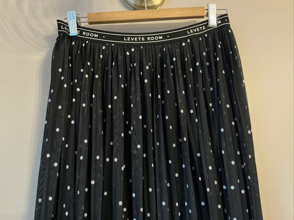 Levete Room Black Spotty Pleated Midi Skirt Elasticated waist Size Medium Length 32” Very good condition x