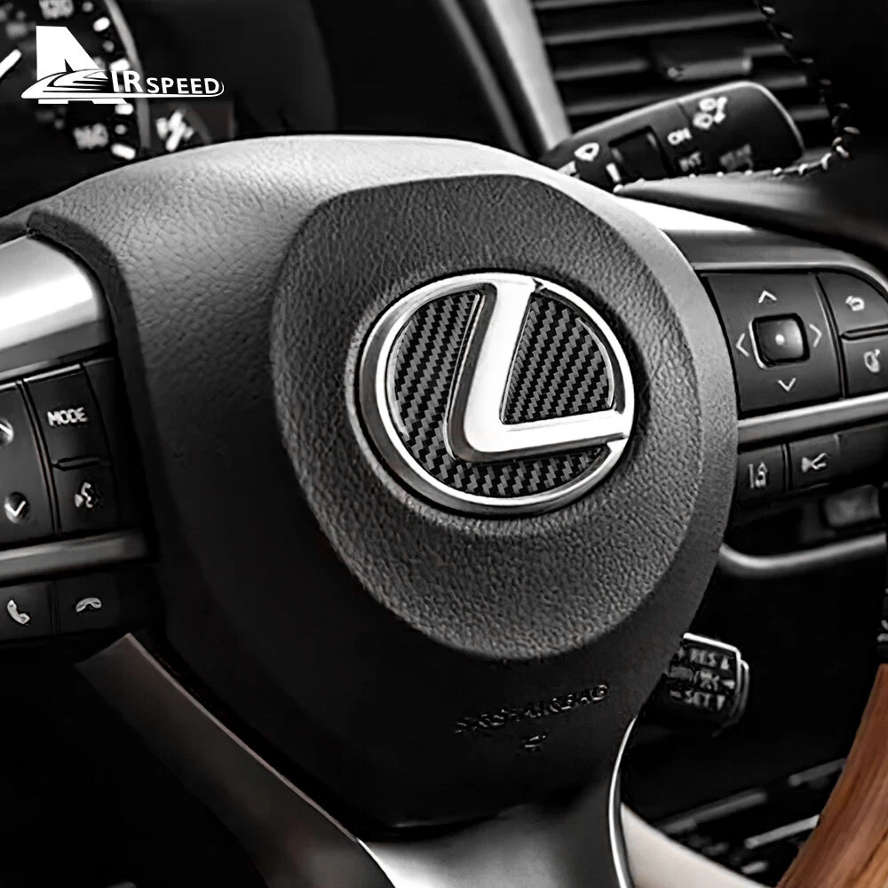 Product Detail Brand: AIRSPEED Type: Steering Wheel Logo Cover Sticker Material: Real Carbon Fiber Color: Black Quantity: 2PCS Fixation: Stick up Use: Decoration Description Products are made of high-quality carbon fiber material with nice textures Products are customized according to original sizes which fit perfectly Fitment For Lexus RX350 2016-2021 designed by