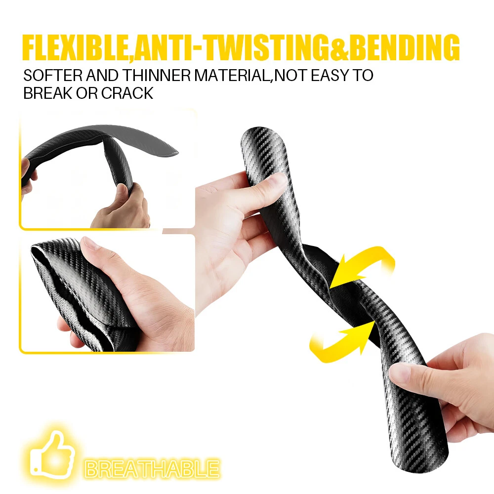 Specifications: Design:Carbon Fiber Look Material: ABS Color: Black Suitable model: Universal for 37-38cm Steering Wheel Cover Features: *Premium quality: Made of high-quality ABS material with heat-resistant, corrosion-resistant,high-strength, stretch-resistant functions. *Enhanced anti-skid design: Anti-skid buttons with a smooth feel allow you to control the direction easily. *Easy installation: Direct installation with superior design, easy to insert and disassemble. *Comfortable driving experience: Enable the driver to steer more accurately when driving or parking,solving driving fatigue effectively. *High adaptability Black Steering Wheel Cover Booster Non Slip Accessories Interior Carbon Fiber Specifications: Design:Carbon Fiber Look Material: ABS Color: Black Suitable model: Universal for 37-38cm Steering Wheel Cover Features: *Premium quality: Made of high-quality ABS material with heat-resistant, corrosion-resistant,high-strength, stretch-resistant functions. *Enhanced anti-skid design: Anti-skid buttons with a smooth feel allow you to control the direction easily. *Easy installation: Direct installation with superior design, easy to insert and disassemble. *Comfortable driving experience: Enable the driver to steer more accurately when driving or parking,solving driving fatigue effectively. *High adaptability The car steering wheel booster with carbon fiber design fits for the steering wheel perfectly, the diameter is 37-38 cm /14.5-15 inches,which is suitable for O and D wheels. For better match, please measure the steering wheel before purchasing. Package Included 2 x Steering Wheel Cover Item Specifics Brand : Unbranded Type : Steering Wheel Cover Items Included : 2pcs Steering Wheel Cover Features : Durable, Direct Fit, Easy Installation, No Drilling Required Material : ABS Fitment Type : Direct Replacement Color : Black Design : Carbon Fiber Look Universal Fitment : Universal for 37-38cm Steering Wheel Cover Manufacturer Warranty : 2 Years Placement on Vehicle : Interior, Front Payment (1) Instant PayPal payment is the preferred method of payment. (2) We also accept payment via PayPal, DebitCard, Visa, MasterCard, Discover. (3) We will only ship to the confirmed PayPal shipping address given with the payment. (4) If you want to ship to other address, please change your PayPal shipping address before you make payment. (5) To avoid initiating an unpaid item claim, please pay within 7 days. Shipping (1) We will ship your item(s) within 24 hours. (2) We ship this item to US usually via USPS first class mail. It usually takes 3-6 working days to deliver. Returns (1) We offer free return & money back guarantee. If you are not satisfied with your purchase for any reasons, you can return the item for refund or replacement/exchange. All returns must include the original packaging. (Please refer to our return policy for details.) (2) If you don't return goods within 60 days from date of purchase, your right to cancel will be revoked. Any items damaged because of incorrect installation will not be refunded. Please contact us for return or troubleshooting help prior to returning any products. (3) Unauthorized reselling of AUXITO products is strictly prohibited and we can't honor the warranty if purchasing from the unauthorized reseller. Contact Us [Our office hours are MONDAY - Saturday 9:00PM - 6:00PM PST, but we will response you once we get your message .There will be some delay on respons if you send message or E-Mail on Sundy.] (1).Negative feedback will not help resolve any problems you have, please contact us via eBay messages before leaving negative feedback, our customer service will make best effort to help you with the issues. (2).We maintain high standards of excellenceand strive for 100% customer satisfaction! Feedback is very important to us. We request that you contact us immediately BEFORE you give us neutral or negative feedback, so that we can satisfactorily address your concerns. FAQ Why swith to LED? LEDs not only give your vehicle a clean, modern look but, with proper use, will outlast any halogen bulb and HID bulb! Low energy draw, high lumen output, and instant on/off LED technology out shines stock bulbs in every way. Which bulbs are used in my vehicle? Check Sylvania automotive lamp replacemnt guide, you can select the year, make, and model of your vehicle, then select the application you want to replace or upgrade from stock. What does CAN Bus mean? CAN Bus means Controller Area Network Bus. This system monitors your vehicle and reports operating conditions. CAN Bus systems are commonly found in European vehicles such as BMW, Audi, Mercedes, Volkswagen, Porsche, and in many American vehicles. While most late model American vehicles have CAN Bus systems, it is always good to check with your vehicle dealer to see which system your vehicle has before purchasing electrical products. When do you need Warning Canceller? Some vehicles with cmplex internal computers(such as Audi,BMW,Jaguar,Mercedes,etc.) might report on-dash errors or flickering on the headlights. The warning canceller fixes the dashboard warning and flickering effect. Bulb Out Dashboard Error: On some vehicles, the dashboard will report as if you have a headlight bulb missing or burnt. It does not affect the headlights functioning, but the light on-dash will be on. The warning canceller fixes the issue. Flickering Issue: This happens when your vehicle does not recognize the new headlights installed. When turning the headlights on, the vehicle's computer does not understand the signal back from the headlights hence thinking they are still off. This triggers the headlight flickering effect. The warning canceller solves this issue. LED Advantages: Very low and efficient energy consumption than halogen bulbs & HID Bulbs Compared with HID bulbs, LED bulbs Light up instantly, no warm up period Low voltage protection, high precision constant current driver chip Longer lifespan than HID and halogen bulbs L