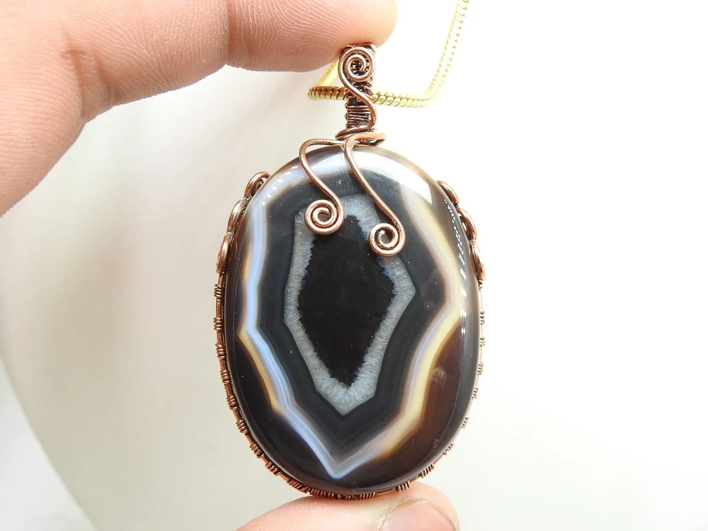 Product Detail :- Black Strip Agate Copper Pendant Size: 48X35 X8MM Approx Shipping Each item is individually packed securely with quality products to help ensure safe and undamaged delivery. Packages are shipped via POST OR DHL ECOMMERCE by Air. We ship within 1-2 business days after order is received. Delivery is generally within 10-14 days worldwide after shipping. In rare case it make take up to 3-4 weeks for delivery depending upon the destination and customs regulation in your country. All packages have a duly filled customs declaration form in order to avoid and delay in customs. You are informed immediately after shipping. Speed post delivery 7-10 days. Extra charges speed post country wise. Payments We accept payments via PAYONEER. Using this feature you can instantly pay by credit card or from your PAYONEER balance. As this is a transaction service provided by EBAY, you are assured for increases safety in online
