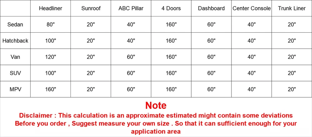 Package Includes: 79''x59'' Headliner Fabric Specification: *Material: Face Content: 100% Suede| Backing Content: 100% Polyether *Thickness: 1/9inch(3mm) *Size:79"*59"=7Ft*5Ft=200cm*150cm(About 32sqft) *Color: Black *Non-toxic:Yes *Soft Finish:Yes *Widely Use:Yes *Easy to clean and install:Yes Yetkole Best motor store Black Suede Headliner 79"x59" Foam Backed for Car Inner Roof Restoration 3mm Package Includes: 79''x59'' Headliner Fabric Specification: *Material: Face Content: 100% Suede| Backing Content: 100% Polyether * Thickness: 1/9inch(3mm) * Size:79"*59"=7Ft*5Ft=200cm*150cm(About 32sqft) * Color: Black * Non-toxic:Yes * Soft Finish:Yes * Widely Use:Yes * Easy to clean and install:Yes Features: ● Premium Material: The fabric is made of high quality Suede headliner with a 1/9" foam backing and has a soft smooth and clean finish on the surface of the fabric,to determine the size you need, please measure your vehicle headliner from front to back, then add 6 inches. (Note: The headliner fabric is folded for delivery, not delivered in rolls, But Don't Worry, just lay the headliner flat for a few hours and the creases will disappear.) ● Refresh Your Car: Suede Headliner Fabric can be used to repair or replace the interior of a vehicle that has been damaged by accidents, soiled by years of smoke, kids, pets or are just plain old ragged and faded from age. It can be used on automobiles, recreational vehicles or motor homes and boats. Restoring classic vehicles is a hobby of yours. ● Widely Used: Ideal for car and truck cab headliner replacement in vehicles that have a sunroof / moon roof and also great for door panels, sun visors, lining gun lockers,hunting cabins, box stands and gun blind interiors. It is also well suited for the front of foam/mesh ball caps, and anywhere else were a polyester flat knit face and foam backing upholstery application is desired ● Easy Care: Spot clean with upholstery shampoo, foam from a mild detergent, or mild dry cleaning solvent. Do not saturate with liquid. Pile fabrics may require brushing to restore appearance. Cushion covers should not be removed and dry cleaned. Note: The fabric will be shipped in folded, you can try with some methods to smooth out the wrinkles: Heat it with a steam iron on the back of the material, then it will be smooth again. Iron the back surface with steam iron with low heat (less than 90 degrees) but not dry iron. Size may be slight inaccuracy due to different batches of the products or hand measurement. Color may be little different due to monitors. Please take real product as standard. The headliner is folded for delivery,not delivered in rolls. The compatibility list is not absolutely 100% correct. It's only for reference. As the size and shape are different for each vehicle, please measure the size you need for your vehicle before purchase, to make sure you have ordered enough area of the headliner to cover. Item Specifics Type Headliner Headlining Fabric Upholstery Repair Replacement Theme Car/Auto Pattern Solid/Plain Material Suede Fabric Backed Foam Brand Modigt Features Coated, Colorfast, Mildew-Resistant, Waterproof Color Black Warranty 2 Year Unit of Sale Lot Placement on Vehicle Roof,Pillar,Dashboard,Sunroof,Sun Visor,Trunk,Tailgate,Console Square Size 79"*59"=7Ft*5FT=200cm*150cm=32sqft Thread Count High Package Includes 1PC 79''x59'' Headliner Fabric Surface Soft Flat Knit Thickness 3mm (1/9") Face Content 100% Suede Backing Content 100% Polyether Suitable 1 Accessories - Bags/Purses, Accessories - Hats Suitable 2 Apparel - Coat/Jacket, Car Upholstery, Crafts, Suitable 3 Cushion, Drapery, Motorcycle Upholstery, Speakers Suitable 4 Car Auto SUV Truck Caravan Pickup Van Camper RV Trailer Suitable 5 Boat,RV,Furniture,Motorcycle Seats,Yacht,Outdoor,Upholstery Other Part Number Faux Leather Roof Lining Headliner Fabric Trimmings Manufacturer Part Number Headliner Suede Fabric MPN Suede Headliner Model Panel Side Lining Ceiling Headliner Repair Fix Replacement Payment 1. It will be much appreciated that you finish your payment asap or it will make UPI(unpaid item case) on your account leading to be suspended or restricted by eBay when those UPI cases carry over to certain amount. 2. Any problems please contact us for more details. Shipping We do appreciate your purchase here. If you are astisfied with the item as well as our service, please kindly leave us a Positive Feedback to help develop our business. Thank you in advance. Returns 1. All items will be shipped to buyer's ebay address. 2. All items will be shipped within 24 working hours upon receipt of payment, and multiple items will be combined shipping. 3. In most cases, delivery takes around 3-5 business days, it's highly depended on the efficiency of the shpping carrier. If your item doesn't arrive on time, please contact us immediately for further assistance. Please note there is no local pickup service available. Contact Us 1. We care about our valued buyers, if you have any questions, our Customer Service staff will be very glad to help you. We try our best to reply your ebay message as soon as possible, please kindly allow 24 hours for us to response. 2. Our goal is to make sure you are a happy buyer and pleasant shopping with us. Please contact us before leaving any 1 or 2 star ratings, negative feedback or open any dispute. We understand the concerns and frustrations you might have, and will do our endeavor to resolve the issues. Wish you have a good shopping time~ Yetkole Best motor store DESCRIPTION PAYMENT SHIPPING RETURN POLICY CONTACT US Black Suede Headliner 79"x59" Foam Backed for Car Inner Roof Restoration 3mm Package Includes: 79''x59'' Headliner Fabric Specification: *Material: Face Content: 100% Suede| Backing Content: 100% Polyether * Thickness: 1/9inch(3mm) * Size:79"*59"=7Ft*5Ft=200cm*150cm(About 32sqft) * Color: Black * Non-toxic:Yes * Soft Finish:Yes * Widely Use:Yes * Easy to clean and install:Yes Features: ● Premium Material: The f