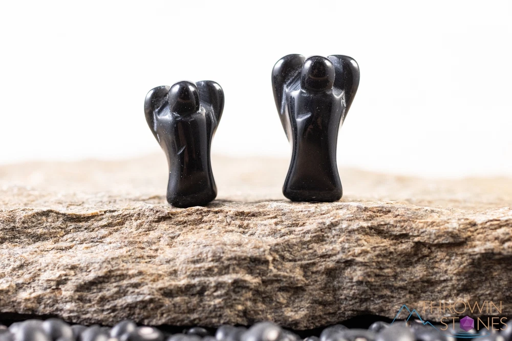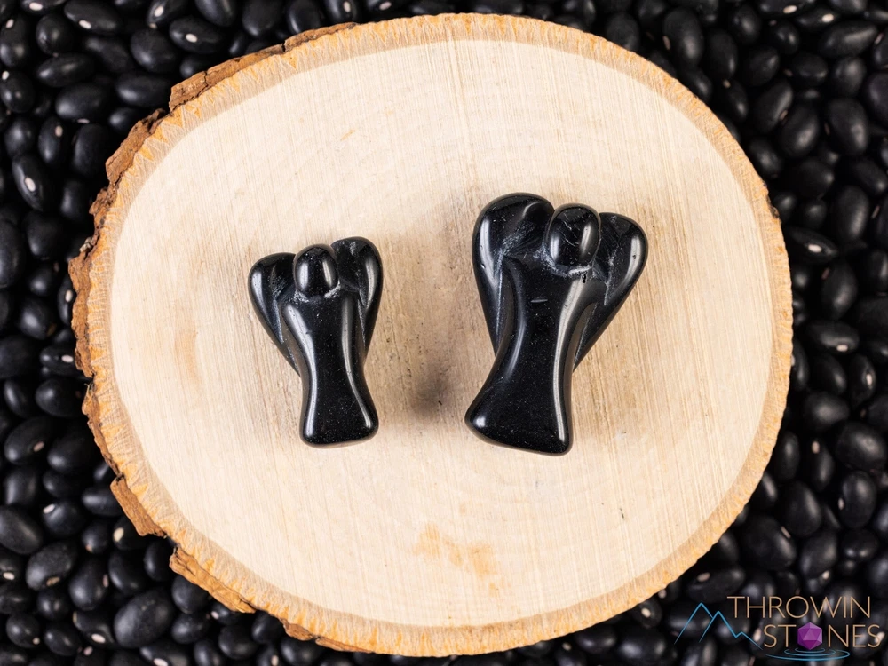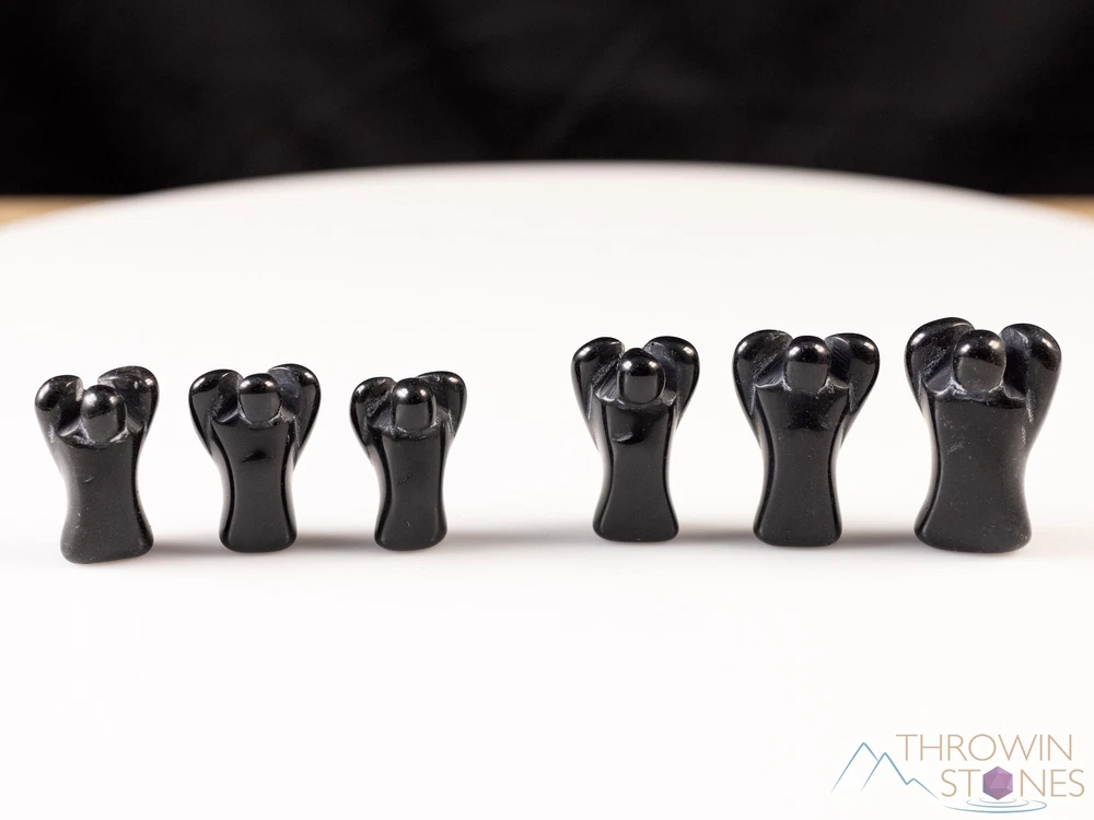 Black TOURMALINE Crystal Angel - Healing Guardian Angel Figurines, Decor, E2077 Approximate Height: XXSmall: 0.7 - 1.1 inches (17 - 29 mm) Extra Small: 1.2 - 1.6 inches (30 - 42 mm) Small: 1.7 - 2.4 inches (43 - 62 mm) Medium: 2.5 - 3.2 inches (63 - 82 mm) Large: 3.3 - 4.1 inches (83 - 105 mm) Extra Large: 4.2 - 4.9 inches (106 - 126 mm) Approximate Weight: XXSmall: 5 - 10 grams Extra Small: 5 - 15 grams Small: 10 - 25 grams Medium: 30 - 55 grams Large: 40 - 70 grams Extra Large: 55 - 90 grams You will receive 1 stone angel. This listing uses professional photography that samples our collection. YOU WILL RECEIVE A SIMILAR STONE(S), BUT NOT AN EXACT STONE(S) IN THESE PHOTOS. Each stone is unique and beautiful so please expect slight variations in color, texture, and size. Please add a note to your order with any specific requests and we will do our best to fill it from the stock available. Some listings have multiple sizes. Please refer to the size ranges and note whether they are in inches or centimeters. 1 inch = 2.54 centimeters. Macro photography is used to show detail but can make items appear larger than their actual size. The ruler photo shows possible variations of the size and quantity you will receive. Gems and crystals are great for altars, grids, terrariums, pocket stones, gifts, home decorating, collecting and more! They are also wonderful additions to meditation, reiki, and chakra work. Healing crystals are not a replacement for traditional medical treatment. Please scroll down and read our Policies before you purchase. Feel free to contact us with any other questions. Thank you for supporting our small business! ! ABOUT US Hello! Throwin Stones is a family owned and operated business based in the Appalachian Valley of Asheville, North Carolina. We have travelled the world extensively and developed reliable and ethical sources for mineral specimens, crystals, and lapidary rough on every continent. We have been procuring and selling top grade and hard to find healing crystals, minerals and supplies for crystal enthusiasts, artisans, designers, metaphysical healers and collectors internationally for 20 years. We are proud to offer all types of metaphysical and healing crystals and minerals from around the world in our store in addition to beautiful, handcrafted jewelry, cabochons, rough and tumbled stones! If you are looking for pure, high energy crystals, you've come to the right place! As you browse our shop, you'll find the best of the best in Quartz, Sugilite, Garnet, Fluorite, Calcite, Jasper, Amethyst, Citrine, Agate, Garnet, Jade, Turquoise, Lapis, Moonstone, Ruby, Sapphire, Tiger's Eye, Lemurians, Tumbled Stones, Crystal Sphere, Merkaba, Chakra Set, Crystal Healing, Crystal Cleansing, Yoga, Meditation and more! Throwin Stones has exhibited at many of the major minerals shows worldwide including Tucson, Denver, Hong Kong, Tokyo, and Munich. Currently, we are putting our attention towards online platforms by offering worldwide sales of our diverse stone collection, which continues to grow daily! Our focus has always been on finding the new, rare, unique, uncommon and most desirable rocks & minerals. We travel to the Source to obtain our offerings! Have a look around our collection here and feel free to contact us with any questions. We appreciate your visit and from all of us at Throwin Stones, thank you for your business! Sincerely, Rusty & Nicole SHIPPING POLICY We ship worldwide! Shipping occurs five to six days a week from Asheville, North Carolina, USA. Our standard shipping options are: Domestic orders = USPS 1st Class or USPS Ground Advantage; our choice International orders = GlobalPost If you pay for a shipping upgrade, we will use that service. For jewelry and cabochon/gemstone orders over $500, we require signature confirmation. For all orders over $750, we require signature confirmation. We offer discounts for combined shipping. If Ebay does not combine your shipping, please try again from a desktop browser. If Ebay still does not combine your shipping, please contact us. Make sure your ADDRESS IS CORRECT AND COMPLETE. If your package arrives at someone else’s address because you gave us an incorrect address, we are NOT responsible for replacing your lost package. If we receive the package returned to us, you are responsible for the second shipping charge and will be billed before we can reship your package to the correct address. If we do not receive the package returned to us, you may place another order. In order to see shipping options and cost, you may have to complete the purchase process past the payment method in order to view and select shipping options. Shipping carriers may take longer than their service declares. We are not responsible if the shipping carrier is unable to achieve their delivery schedule. If you receive your package and it was damaged during shipping, you must be able to provide a photo of the damaged packaging and/or the damaged item in order for us to have everything we need to file an insurance claim. A refund may not be provided if you are unable to provide photos of the damaged packaging and item for insurance purposes. INTERNATIONAL SHIPPING While we have a quick processing time and ship your order within 1-2 days of receiving it, sometimes tracking will not begin for several days. If your tracking number does not show any movement on your package, please be patient. Carriers will often be in possession of packages but not show updated tracking information, even though the package is indeed moving. As we only have the same tracking information you have, please be patient and wait for your tracking to show movement before contacting us asking where your package is. On average, GlobalPost takes 10-14 days for packages to arrive at their final destination. HOWEVER, sometimes services can have delays, and we have experienced on rare occasions it can take 8 weeks or longer, depending on your country and your customs office. Be p