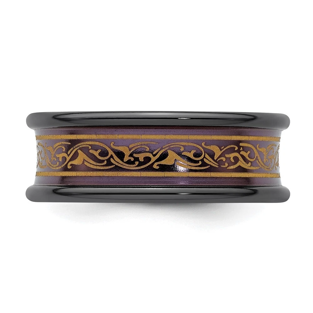 Black Titanium Copper-tone Anodized Laser Pattern 8mm Concave Band Ring Size 9