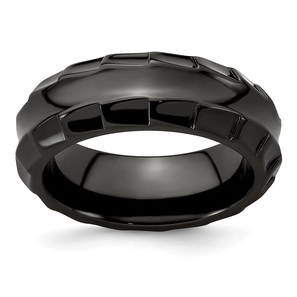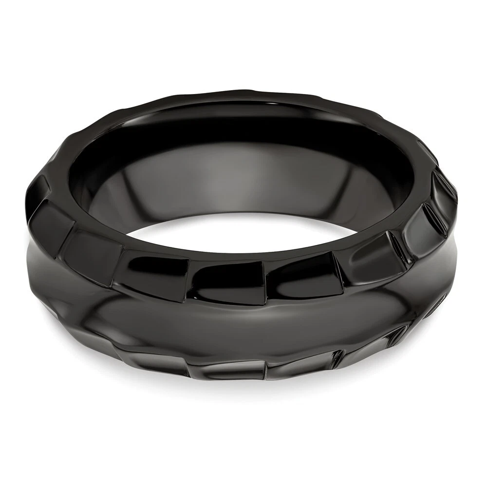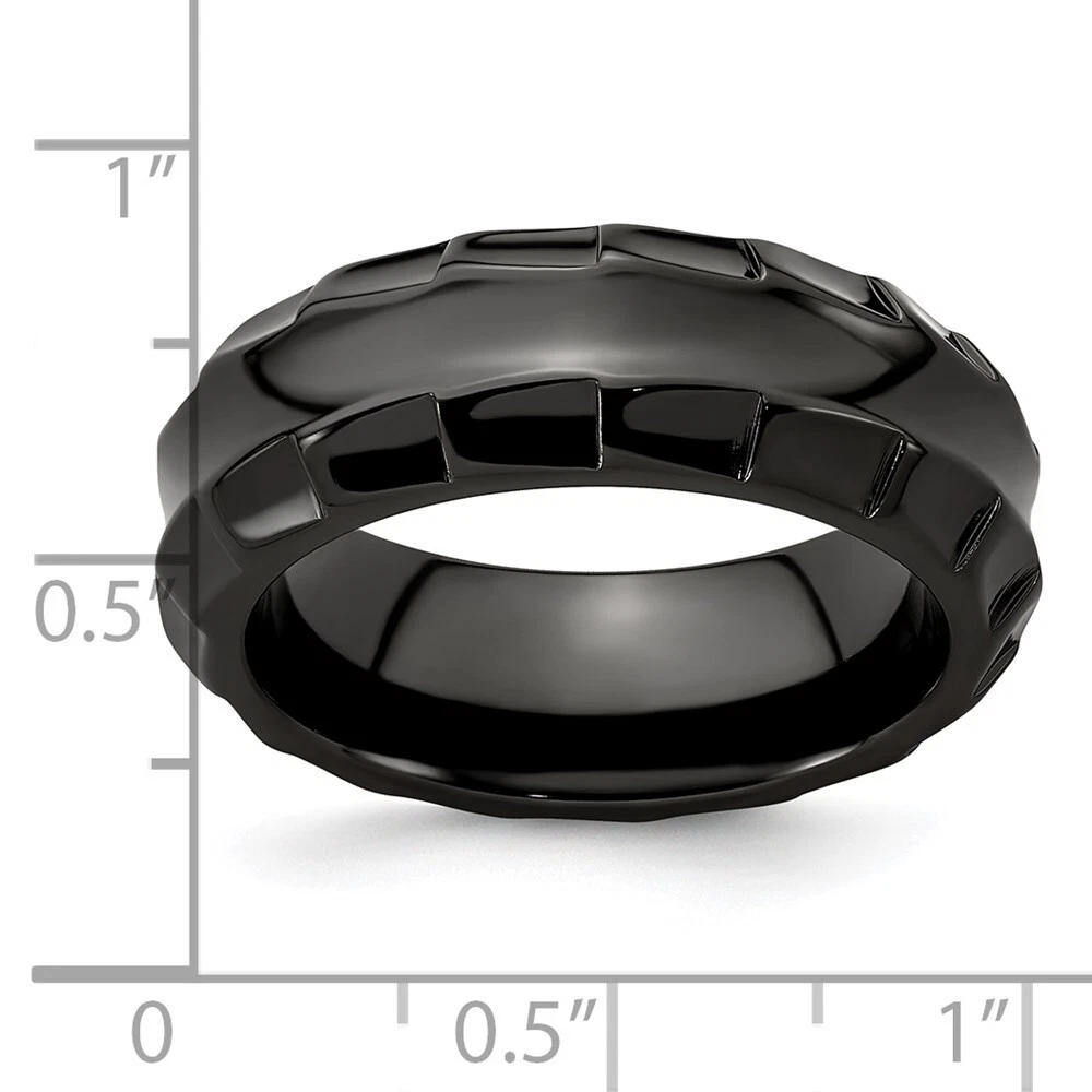 Black Titanium Polished Faceted Edges 8mm Ring Size 8 for Men 8.06gm