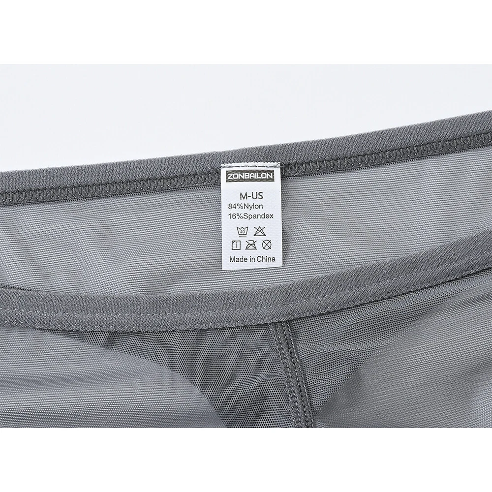 Product Description ZONBAILON--A professional men's underwear design and production manufature and somebody have given us a nickname --Underwear's Artist. We uphold the people-oriented design concept, development and production of underwear that men want. ZONBAILON Men's See Through Thong Underwear Premium Breathable Mesh Fabric 84% Nylon, 16% Spandex Sexy Sheer Mesh Thong Underwear Bulge Pouch for Balls BREATHABLE SEXY DESIGN: See through mesh fabric briefs for men ,more breathable and lightweight BULGE POUCH G-STRINGS : Comfy big pouch for balls with stereo breathable design space, shaping without restraint, very protective of genital health SOFT WAISTBAND UNDERWEAR BRIEFS FOR MEN : Reduce chafing and stimulation on your skin SEXY DESIGN THONGS BIKINI BRIEFS FOR MEN:Showing off that bubble hip & butt-flaunting and your fere will loves to see you in it FREE RETURN: If any question for sexy mens thongs g-string underwear,please feel free to contact us