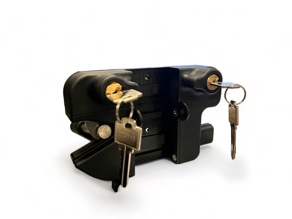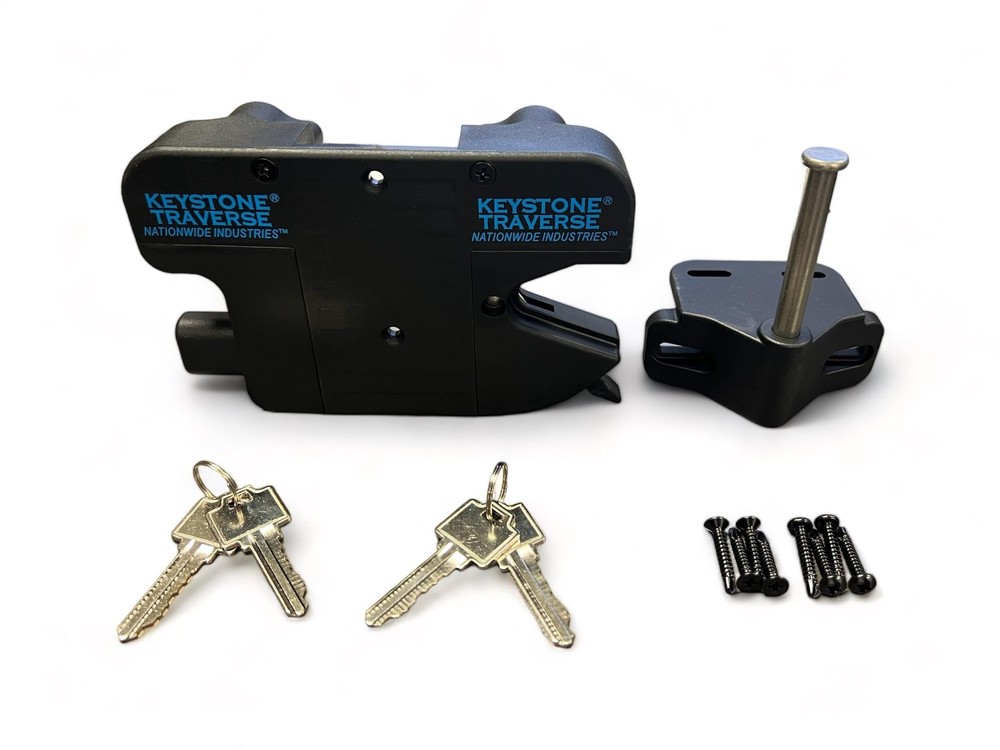 TWO-SIDED FENCE GATE LATCH: Secure your fence or railing gate with the Travers gate latch. It's compatible with vinyl, wood, and metal gates, and allows easy access from both sides of the gate. Works with left or right swinging gates. HEAVY DUTY CONSTRUCTION: Manufactured from high quality, durable UV-resistant nylon polymer and stainless steel, the Keystone latch will not rust or corrode over time. LOCKABLE GRAVITY LATCH: The Keystone Latch utilizes self-latching technology to prevent jamming and sticking. It uses a 6-pin key cylinder and locks/unlocks from both sides. EASY TO INSTALL: The gate latch kit includes instructions and all necessary fasteners for easy installation. It does not require any holes to be drilled through the posts. It is designed to fit square gate posts up to 2 inches.