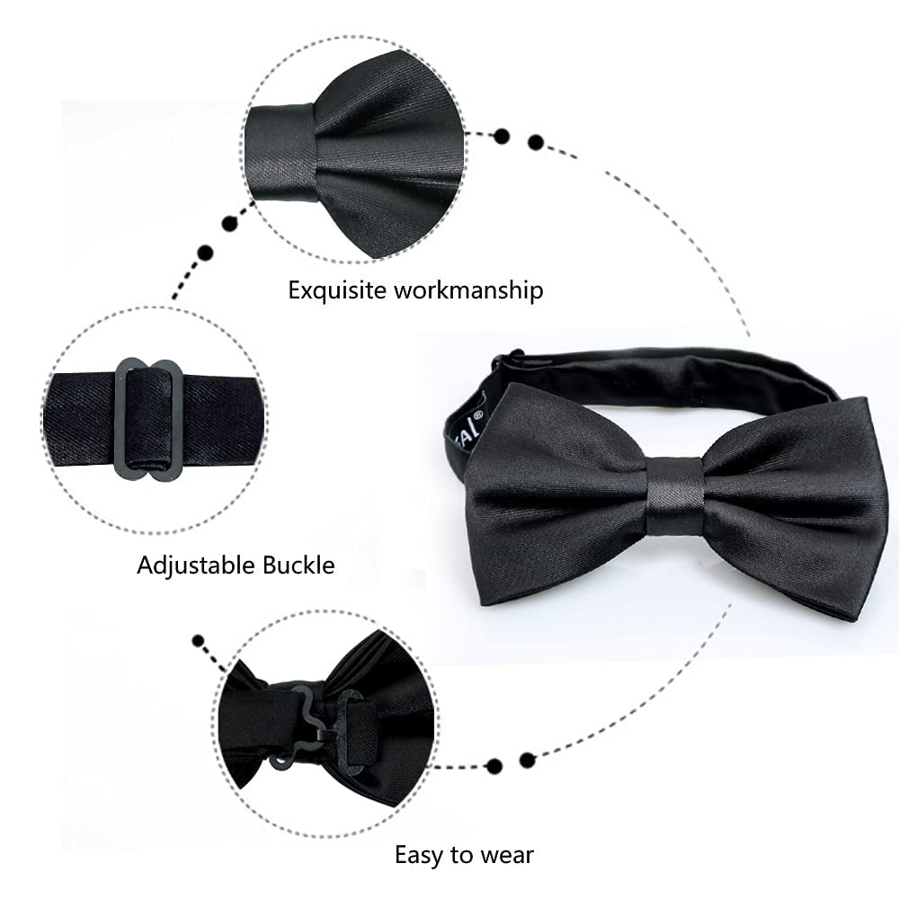 (1) Men's solid color pre-tied bow tie and handkerchief and cufflinks set (2) Material: Polyester (3) Item Size:bow tie-12cm*6.5cm/4.72''*2.6''; Pocket square 23cm*23cm/9.05''*9.05'' (4) A perfect compliment for any group, wedding party or holiday event. The fantastic quality of this material will guarantee you a life time wear, and will fully satisfy your expectation Note: All items are guaranteed brand new. For quality control purposes, we checked all the items one by one,if you have any questions please feel free email me, thanks. The real color of the item may be slightly different from the pictures shown on website caused by many factors such as brightness of your monitor and light brightness. Please allow slight deviation for the measurement data. This listing is for one Men's bow tie+hanky+cufflinks only, other accessories (if any) are not included. CLASSIC DESIGN: Classic style and fashion design to match tuxedo shirt or other uniforms, adding a vibrant color to your outfit in the spotlight HIGH QUALITY: This set, made from a high quality polyester silk, has a Satin look and Silk feel, which brings a smooth and comfortable wearing experience SIZE: Bow tie(12cm*7cm/4.7"*2.75"); Pocket square(25cm*25cm/10"*10") LONG-TERM USE: Your expectation will be fully satisfied its fantastic quality of the material, which guarantee you a long term wear PERFECT GIFT: Gift box packaged, including 1*bow tie, 1*hanky, 1 pair of cufflinks, which are important accessories to men¡¯s collection and can be an excellent gift for father, husband or boyfriend