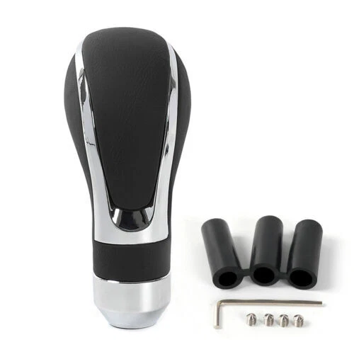 FITMENT: Fit for most of the manual transmission, part of the automatic transmission Come with 3 plastic hoses (8mm,10mm,12mm) Direct replacement for original knob, no modification is required Material: Leather+Metal Size: 105cm x 28cm Color: Black INSTALL: Remove the original one The top of this row of gears to remove the bottom of the metal Take plastic sleeve for the shift bar size The rubber sleeve into the gear bar inside The shift head directly into the gear lever PACKAGE INCLUDED: 1 x Manual Shift Knob 3 x Adapters(8mm,10mm,12mm) 4 x Screws 1 x Spanner Please allow 0.5-1 inch difference due to manual measurement.(1inch=2.54cm) There are no instructions included in this kit.Professional Installation Is Highly Recommended! Please compare the gear shift head with your original one before purchasing!