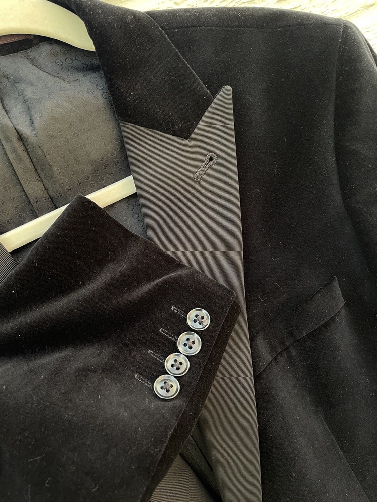 This black velvet tuxedo blazer is a total steal! The slim fit looks sharp, and the satin lapels add a touch of class. In excellent used condition, it fits true to size—perfect for weddings, dinners, or any formal event. The measurements are spot-on, making it easy to confirm the fit. Great quality for the price! Check out the seller’s other items too. Highly recommend!
