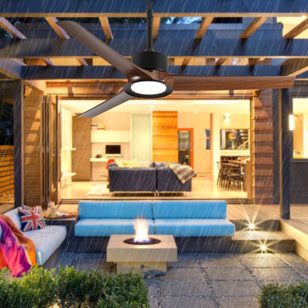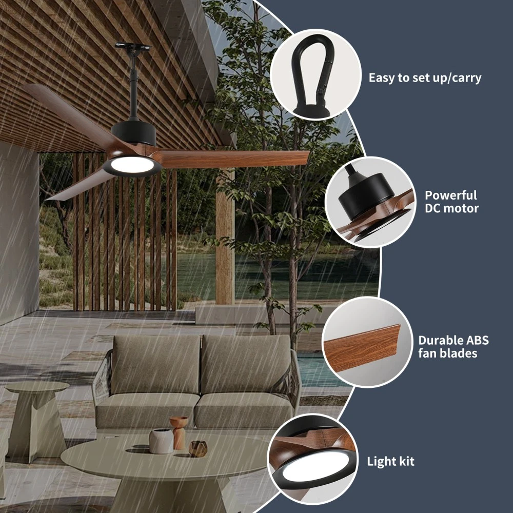 Outdoor Ceiling Fan with Light: 52 Inch Black Waterproof Gazebo Fans with Lights Outdoor Hanging 6 Speed Reversible DC Motor Upgrade your outdoor space with this 52-inch black outdoor ceiling fan with light—perfect for gazebos, patios, porches, and any outdoor area where you want to combine comfort, style, and functionality! Designed to withstand the elements, this fan brings reliable performance and sleek aesthetics to your outdoor living space. Outdoor Durable & Weather-Resistant Design : Featuring a waterproof rating, this outdoor hanging fan operates safely and stably even in humid, rainy, or damp outdoor environments. No need to worry about weather damage disrupting your comfort—its rugged construction ensures long-lasting use in all outdoor conditions, offering greater flexibility and a wide operating range for all your outdoor activities. Sleek Aesthetics & Sturdy Construction : As a wet-rated outdoor ceiling fan, it comes with a metal suspension rod and joint cover finished in black baked enamel, delivering exceptional sturdiness, durability, rust resistance, and corrosion resistance. The high-performance copper DC motor ensures low power consumption and strong heat dissipation, keeping energy costs low while maintaining powerful airflow. The lightweight yet robust ABS blades provide efficient air circulation without sacrificing durability. With its classic black finish, this fan boasts a sleek, elegant look that seamlessly complements various home styles and outdoor decors. Key Specifications : - Assembled Dimensions: 52.00 inches (L) x 52.00 inches (W) x 18.00 inches (H) - Product Weight: 13.00 lbs - Package Dimensions: 28.00 inches (L) x 13.00 inches (W) x 8.00 inches (H) - Package Weight: 14.00 lbs - Color: Black - Material: ABS Outstanding Performance Features : Equipped with 6 adjustable speed settings, you can easily customize the airflow to match your comfort needs—from a gentle breeze to a powerful cool down. The reversible DC motor allows you to switch between cooling mode in summer and air circulation mode in winter, making it a versatile addition to your home year-round. The integrated light adds convenience and ambiance, perfect for evening gatherings or late-night outdoor relaxation. Worry-Free After-Sales Guarantee : We stand behind the quality of our product! Enjoy a 1-Year Quality Warranty for added peace of mind, covering any manufacturing defects. Plus, take advantage of our 30-Day Free Return & Exchange Policy—if you're not completely satisfied with your purchase, you can return or exchange it hassle-free within 30 days.