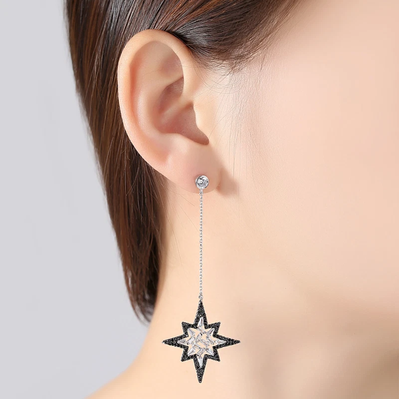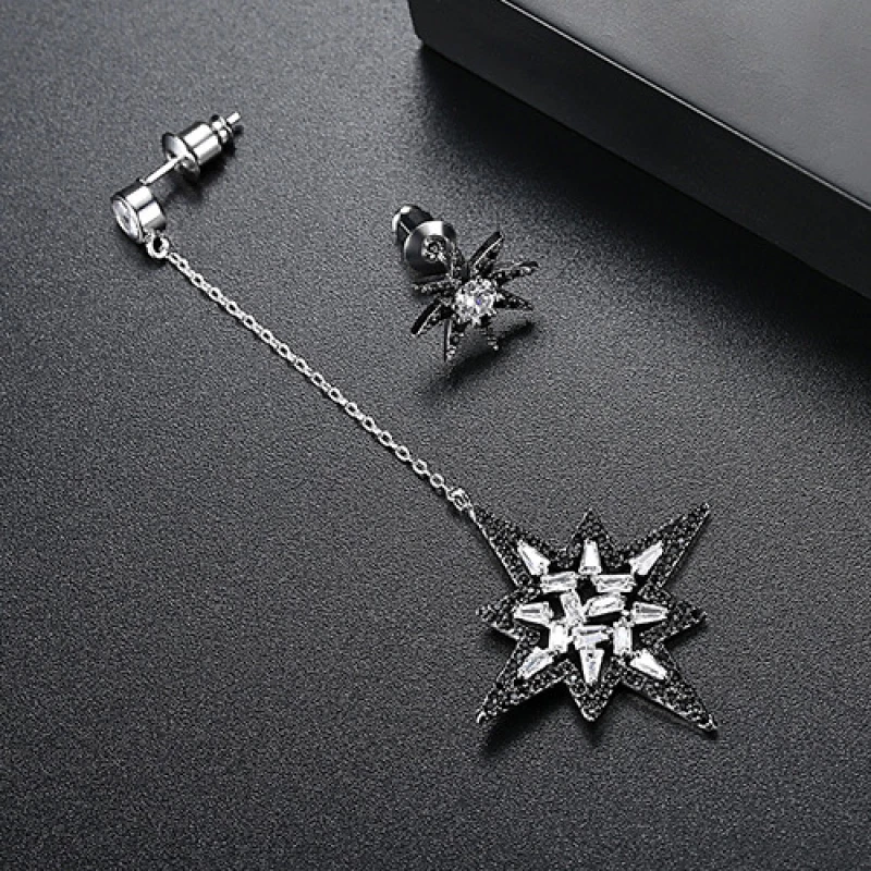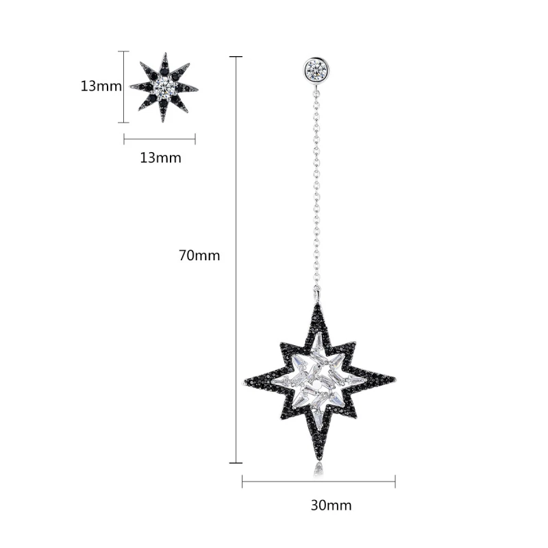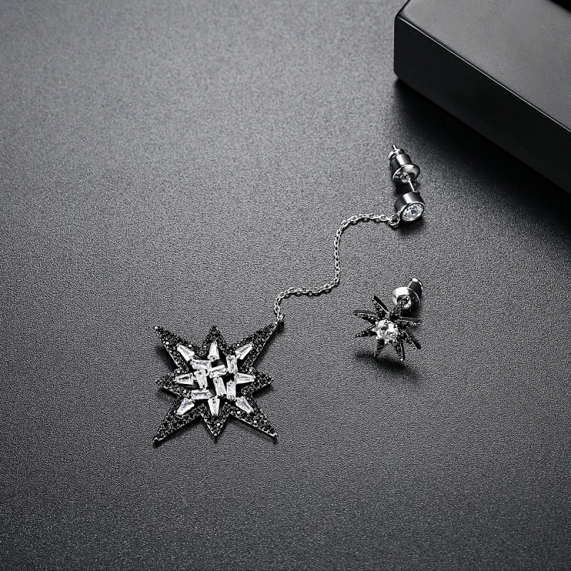 Black White 3A Zircon Earrings Fashion Asymmetric Star Women Gold Plated Jewelry