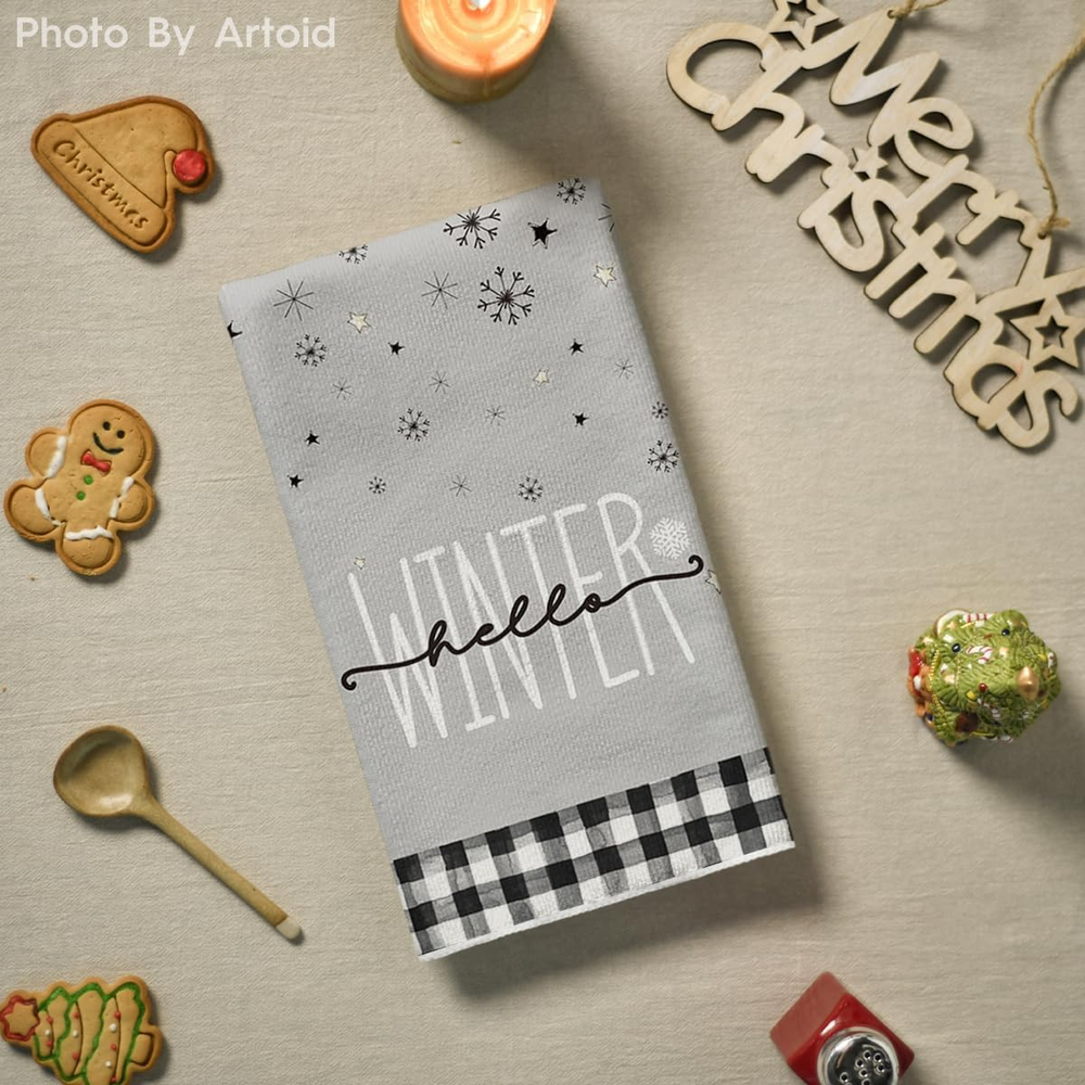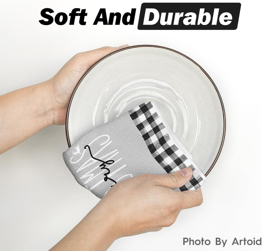Black White Buffalo Plaid Snowman Xmas Trees Christmas Kitchen Towels Dish Towel