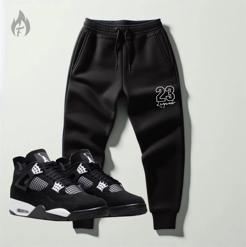 This Listing Is For: Threads On Fire "23 Legend" Sweatsuit To Match Air Jordan 4 "White Thunder" Black/ White 1) 23 Legend - Black Hoodie 1) 23 Legend - Black Joggers (shoes/ accessories not included) Sizing Below HOODIE FABRIC Premium quality cotton 80% polyester 20% for a higher end material blend hoodie that last longer and doesn't lose quality. Significantly better quality material than 50/50 blend hoodies. Best material for the price, guaranteed or your money back! Made by threadzonfire streetwear. JOGGER FEATURES Unisex, ribbed gusset at crotch, ribbed bottom cuff and waistband, tapered fit, flat draw cords, 5-thread stitching, angled side pockets, 1 back pocket. Ships out within 48 hrs. via USPS w/ tracking and delivery confirmation. Payment must be made via PayPal and ships to confirmed address only. Feel free to contact me if you have any questions or concerns. Issues can usually be resolved between buyers and sellers. I provide honest and responsible feedback and ask the same in return. We also accept returns and exchanges hassle-free. Thank you for looking and don't forget to check out my other items as I will be adding more like this.