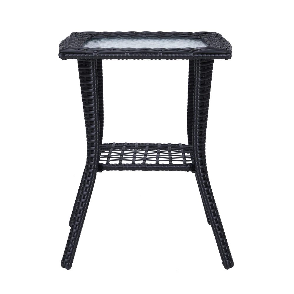 Black Wicker Rattan Side Table with Glass Top for Patio Garden For Indoor