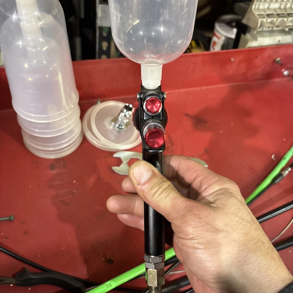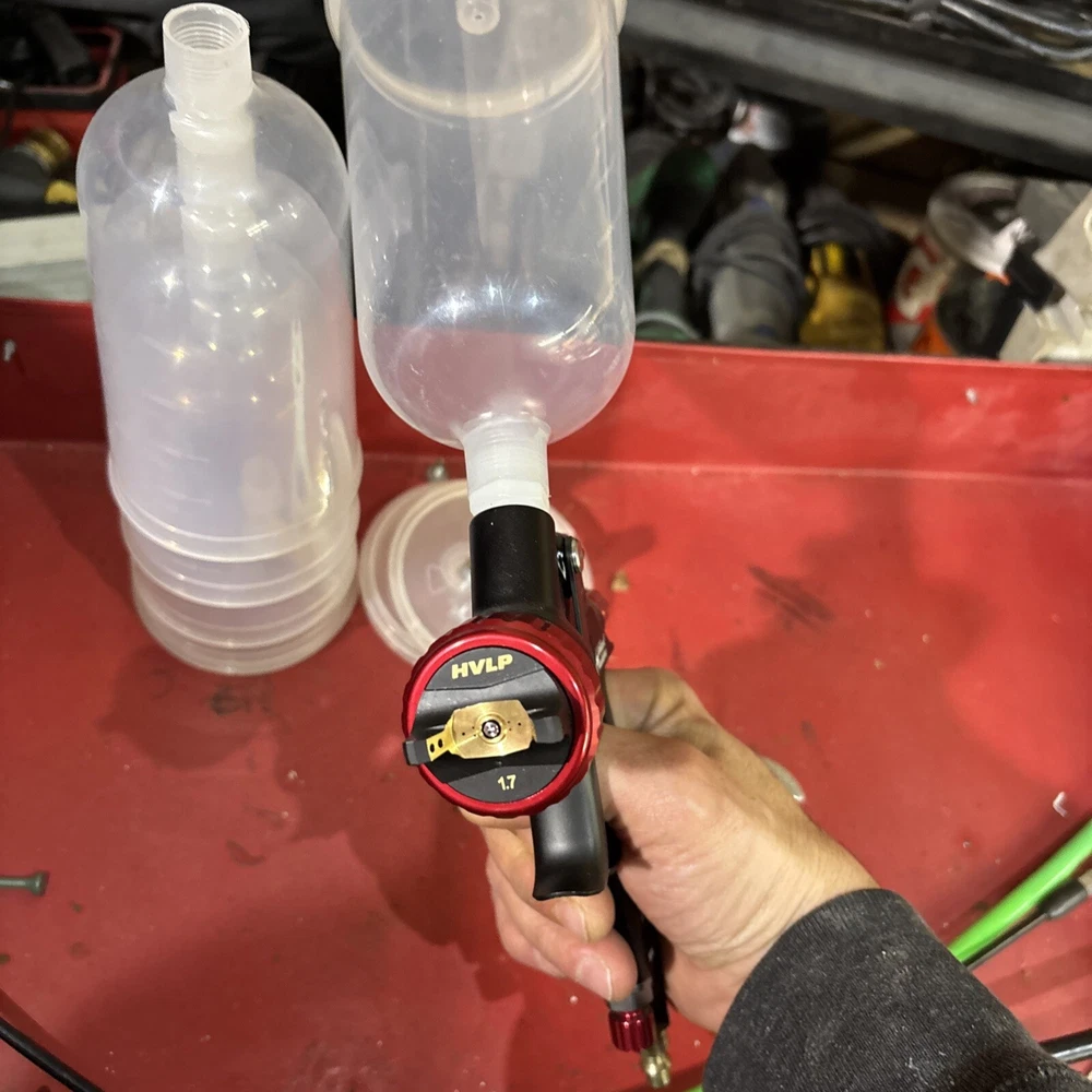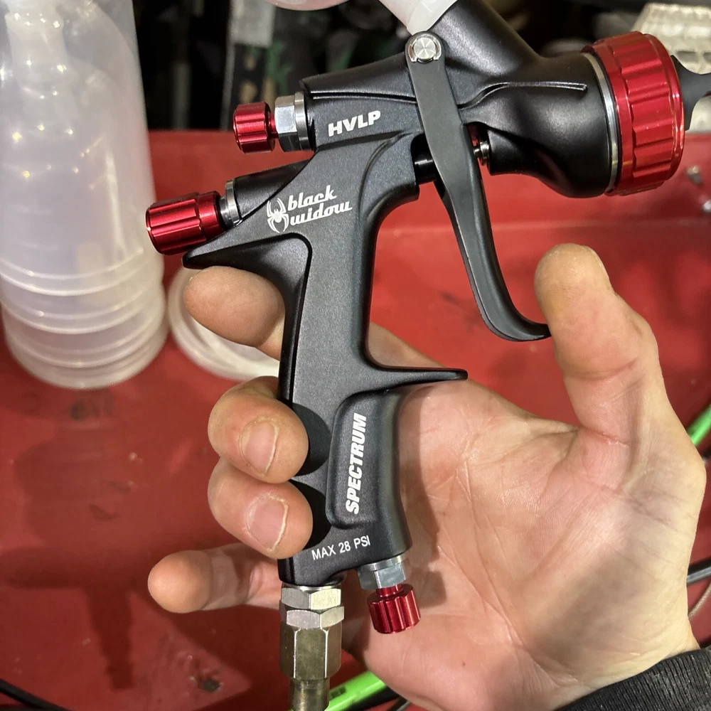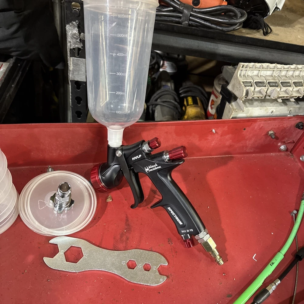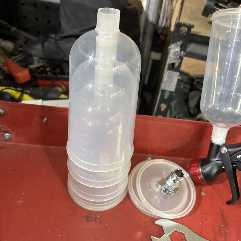 Never used no box also comes with spectrum disposable cups and cup adapter wrench to clean it that comes with the spray gun everything in the pictures
