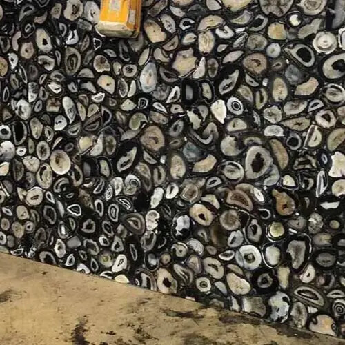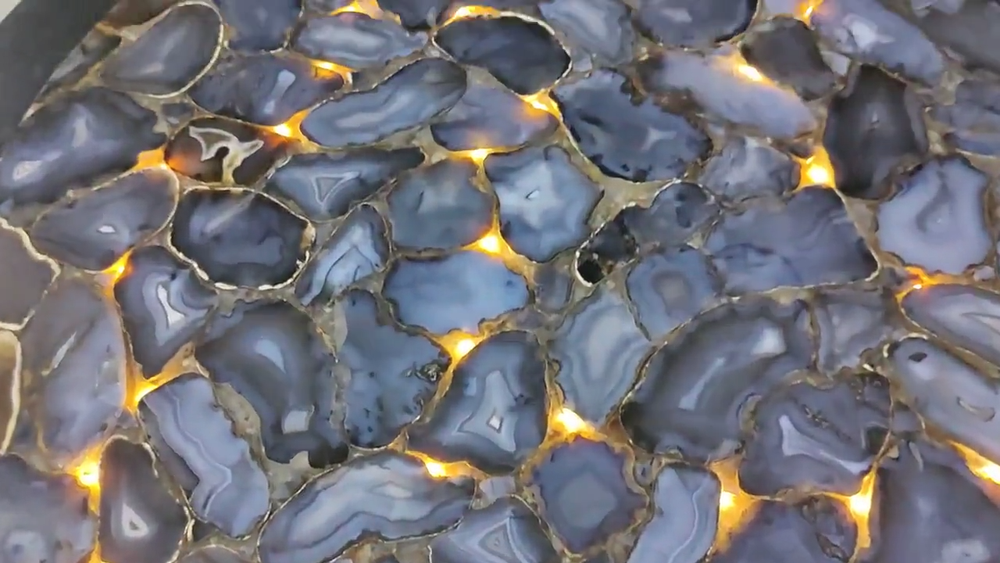 Welcome To Stone-Craft- Creations Shop Description Very unique Art by Indian Artist ,Coffee/Side Table top Used Material: Natural Agate Stones Arts Size: According To Size Variation Color: Black Shape: Rectangle Pattern: Handmade Room: Bedroom, Dining Room, Hallway, Home Office/Study, Kid’s Bedroom, Kitchen, Laundry/Utility Room, Living Room,Patio, Playroom Packaging: Wood & Foam Export Packing Shipping: Air Can Be customize ,Please Message us your desired Size 1. It can be used as a Dining Table, Guest table, coffee table, center table top in show room as well as a gift for your loved ones. 2. The table top is made in Agra India & fully handmade. 3. The top will be delivered by FedEx or DHL free of cost door to door. 4. If there is any local tax,custom duties or Vat will be paid by the buyer at the destination. 5. The parcel is dispatch with proper packing & fully insured covering all kind of risk. 6. To maintain the table top is simple soap & water & dry cotton cloth. 7. If You Are Looking Something Customize, Let Us Know We Will Make For You As Per Your Design, Size & Shape. 8.Table top does not includes any wooden, marble stand or base if you like to buy marble or wooden base or stand that will be charged extra. Marble Agate Table Tops We are Manufacturer & Exporter of marble agate table tops. These marble agate table tops have different shapes like Round Table top, Octagonal Table Tops, Rectangle / Dining table tops, Square Table tops, Chess Table tops, Taj Mahal Table tops, Custom Designs Table tops also make marble Table top Base and Stand. Then we can be used as dining tables, coffee tables, Center tables, conference tables, chess boards, reading tables, bar tables , Garden table, side and corner tables or any other use as per the indoor and outdoor decor. They can also be placed outdoors in the garden, as marble is stain free, offers great resistance to the forces of nature, and can withstand heavy temperatures. We also meet customized requirement and offer our marble table tops at industry leading prices. About Agate Stone- Agate is a rock consisting primarily of cryptocrystalline silica, chiefly chalcedony, alternating with microgranular quartz. It is characterized by its fineness of grain and variety of color. Although agates may be found in various kinds of host rock, they are classically associated with volcanic rocks and can be common in certain metamorphic rocks. Ancient use of agate stone Agate is one of the most common materials used in the art of hardstone carving, and has been recovered at a number of ancient sites, indicating its widespread use in the ancient world; for example, archaeological recovery at the Knossos site on Crete illustrates its role in Bronze Age Minoan culture Types Of Agate 1. Fortification Agate This is the most common and distinctive type of agate. In these agates, bands crystallized into concentric layers that more or less follow the shape of the cavity. The banding resembles an aerial view of a fort 2. Water-Line Agate (also called water-level or onyx) During its formation, silica-rich solution either entered the cavity slowly laying one band at a time, excess water drained out leaving a small amount of silica to settle out into separate bands, or the vesicle filled under low pressure. In any case, the silica crystallization in water-level agates is controlled by gravity in one orientation, forming a stack up of parallel bands. 3. Shadow Agate Some agates exhibit a shadow effect in which there is what appears to be movement across the agate layers when the specimen is rocked back and forth (or your orientation to the specimen moves). This optical effect only occurs when there are alternating translucent and opaque bands. It is caused when light goes into the agate, but is not reflected out. 4. Tube Agate Tube Agate During the formation of some agates, parallel projections of tiny hair-thin mineral rods grow first within the silica gel, around which later the chalcedony agate micro-crystals form. In some cases the inclusions remain, but sometimes they weather away leaving hollow tubes that subsequently fill in with silica. 5. Eye Agates This mysterious agate characteristic is believed to be formed when most of the silica gel drains from the cavity, leaving only a droplet that “beads up” on the inside wall of the cavity. This droplet crystallizes into solid chalcedony “eyes”. In some cases, crystal growth will continue from this droplet in a manner similar to the formation of stalactites in caves. Later, the pocket fills in with the usual deposition of chalcedony microcrystals. 6. Plume Agate These agates initially had formations on their outside layer that formed prior to the deposition of chalcedony bands. They are filament growths of mineral inclusions that resemble ferns or feathers. 7. Geode Agate Geode Agate In some cases the supply of silica-rich water runs out before the entire cavity fills in. When there is a hollow center within a crystalline outer fill, the specimen is considered a geode. Not all geodes have agate banding, but many do. Also, the inner layers can form into several different types of silica mineral crystals and may even have other types of mineral crystals. 8. Moss Agate Moss Agate Moss agates have clusters of mineral inclusions that resemble plants, trees, or landscapes. Most moss agate inclusions are comprised of iron or manganese oxide. In some cases, the inclusions inhibit chalcedony banding allowing the mineral clusters free reign to grow within the silica gel. 9. Seam Agate Seam agates for in cracks within host rock, rather than in rounder pockets. The bands form in parallel rows that follow and fill in the crack or seam.