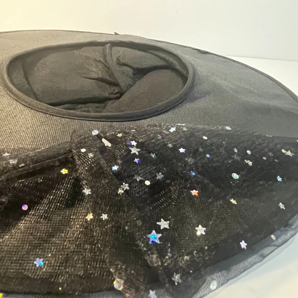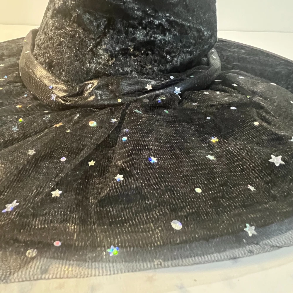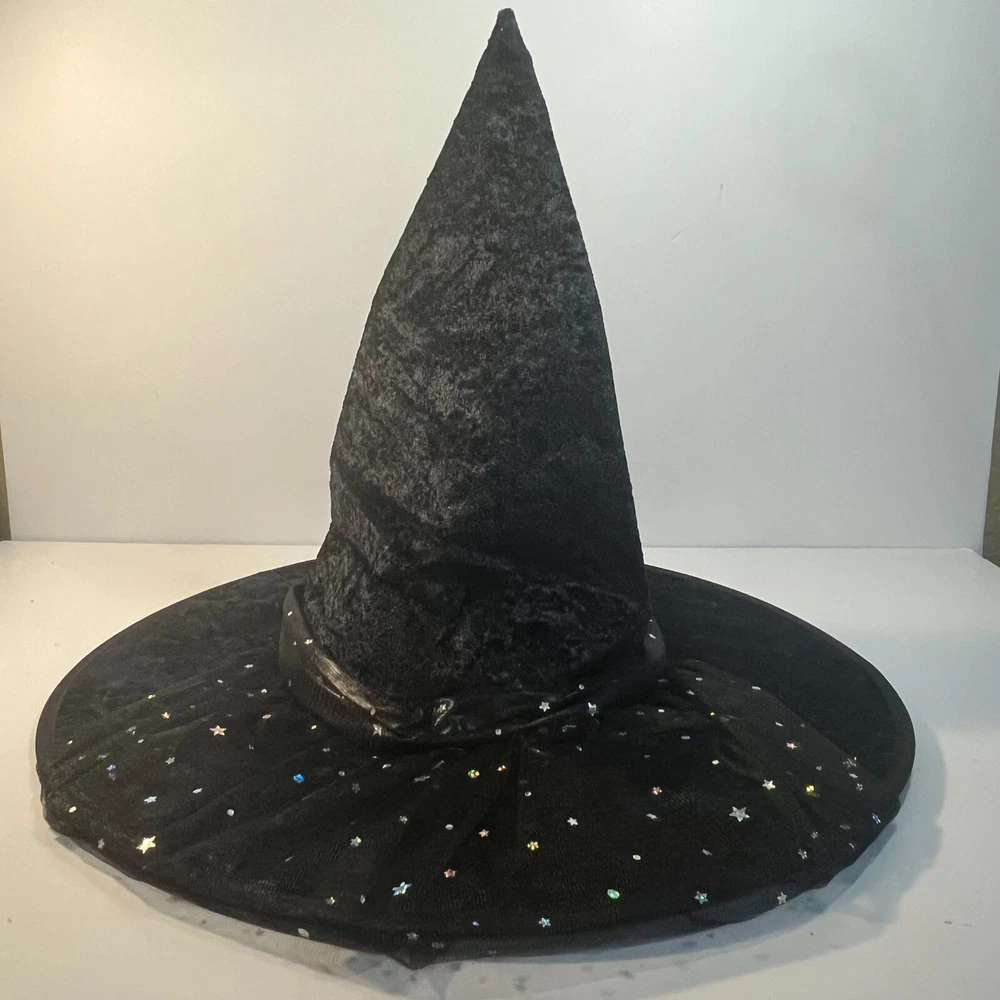 Witch Hat with Face Veil Net The Net comes down over the face and has stars and dots in silver One size fits most - Adult Comes new with tags