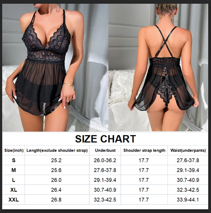 Features: 100% brand new and high quality Comfortable to touch and wear Great as a gift for your lover or friends Sleeping Dress ONLY, any other accessories NOT included! Material: Satin,Lace,Polyester Size: S/M/L/XL/XXL Color:Black Notes: 1: Measurement of the item lying on the table may cause 1-3cm difference, please note the sizes for it doesn't fit all people. Please view the details of the size information before your purchase. 2: The real color of the item may be slightly different from the pictures shown on website caused by many factors such as brightness of your monitor and light brightness when photo taking. Package includes: 1 x Sexy lingerie ( N o Including st o c king s, except 062) inkfrog terapeak