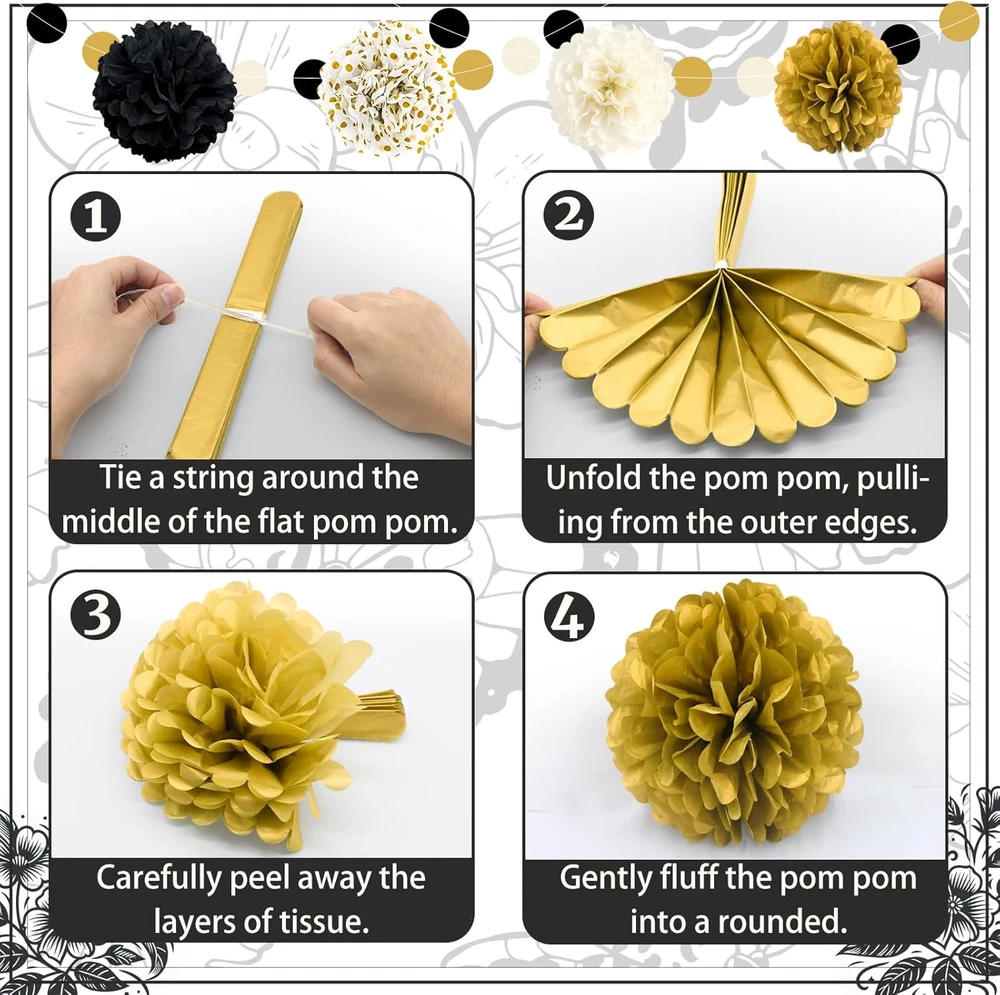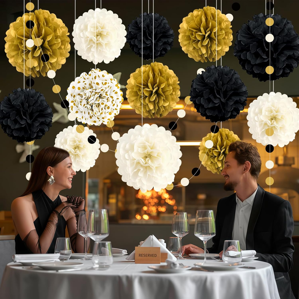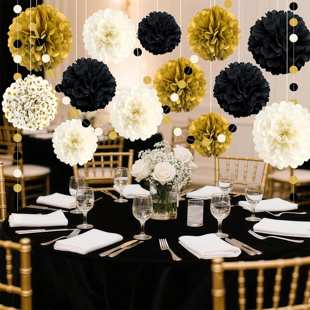 Store New Arrivals Add to Favorite View Feedback Contact Black and Gold Party Decorations, 16 PCS Tissue Paper Pom Poms Dots Paper Garland Kit for New Year Party, Graduation, Wedding, Birthday, Engagement, Baby Shower, Retirement Party Decor Description Item model number Paper Flower Ball-25312 Color Black Gold Product Dimensions 12"L x 12"W Material Paper Item Weight 8.4 ounces Model Name Paper Flower Ball Occasion Baby Shower, Birthday, Graduation, New Year, Wedding Size 12 inches [Black and Gold Party Decorations]: This paper pom pom decorations set contains 13 paper pom pom flowers of different sizes (black × 4, gold × 4, ivory × 4, gold polka dot × 1), the sizes are 12", 10" and 8", and includes 3 black, gold and white hanging polka dot garland decorations (each length is 9.8ft). [High-Quality Materials]: This black and gold pom poms decorations set is made of high-quality paper, which is thicker and durable, ensuring that it can present a perfect round flower ball, making our holiday party decorations more upscale and the party atmosphere better. [Multiple Scenes and Wide Use]: The combination of gold, black and ivory white is elegant and versatile. Suitable for New Year decoration, weddings, birthdays, graduation ceremonies, holiday parties, bachelor parties, baby showers and other theme parties. [Easy to Assemble]: Each paper pompom is individually packaged, and it is very simple to follow the instructions. After unfolding the paper pompom, it can be used. It can be hung on the ceiling, windows, mantels, eaves, doorways, arches, balconies, branches in the backyard. [Satisfaction Guarantee]: We attach great importance to customer satisfaction, if you encounter any problems during use, please feel free to contact us. We will provide you with friendly customer service. Product description ABOUT US We offer the best prices around on high quality products. Our E-store includes media such as books, movies, music and games while offering electronics, toys, sporting apparel, clothing, tools, general home, garden items and more. SHIPPING We are always working hard to ensure your package arrives as soon as possible. Please understand that some factors like weather, high postal traffic, and the performance of shipping companies are outside of our control. We offer free shipping to the lower 48 states and ship within 2 business days of payment, usually sooner. We do not accept P.O. Boxes. Please provide a physical address. For shipping outside of the continental USA, we only use eBay's Global Shipping Program.The item is shipped to KY and then sent to the rest of the world. International customers are responsible for all duties and taxes. Continue to check out in order to calculate costs for shipping the item to your country. Messages regarding eBay's Global Shipping Program MUST be directed at eBay EXCLUSIVELY. RETURNS We offer a 30-Day Return Policy on items which you are not completely satisfied with. You have the option for a full-refund or an exchange of the item. No returns are available on items shipped outside of the USA. PAYMENT We accept PayPal. CONTACT US This page content is yet to come Please ad us to your favorite seller and visit again later Thank You CUSTOMER SATISFACTION We try our very best to make sure every customer is completely satisfied. If there's a problem, message us! We're happy to help. WE ACCEPT