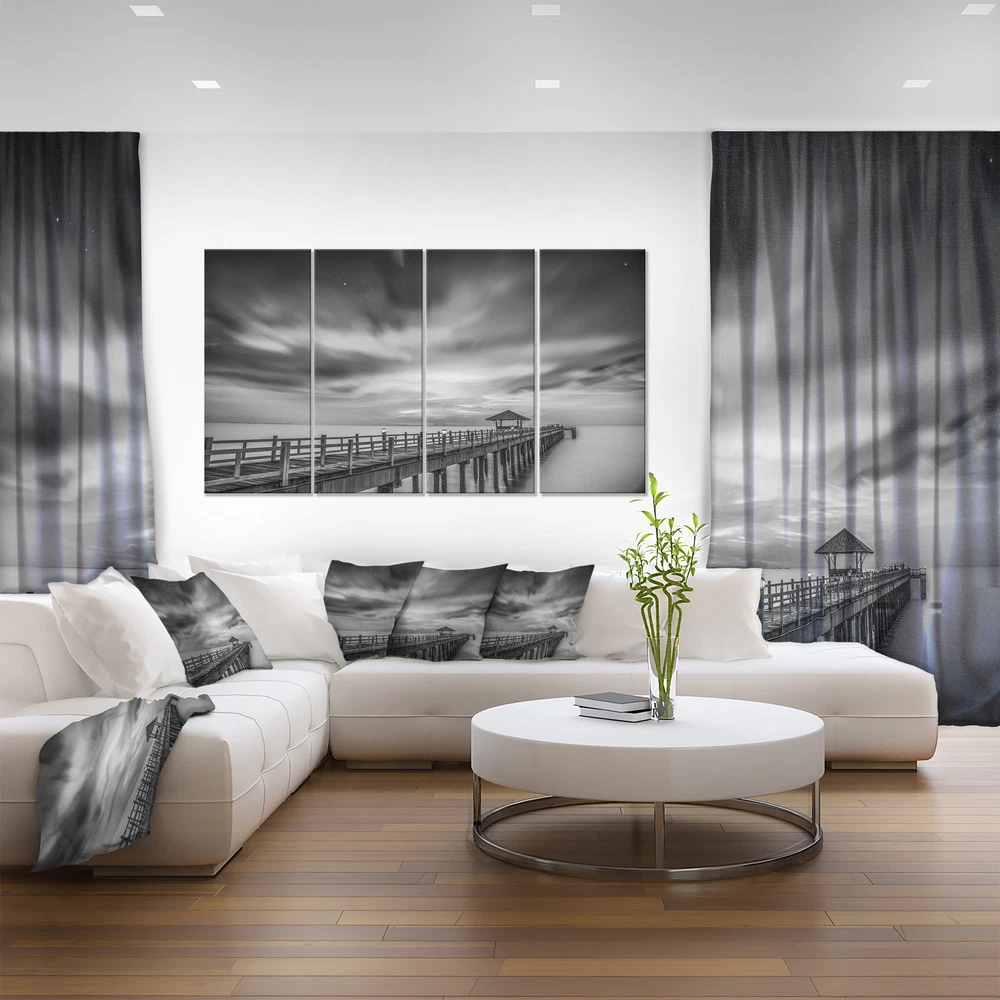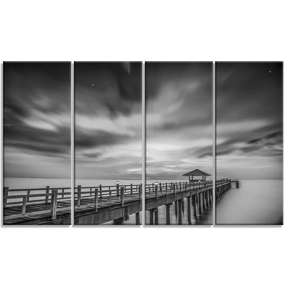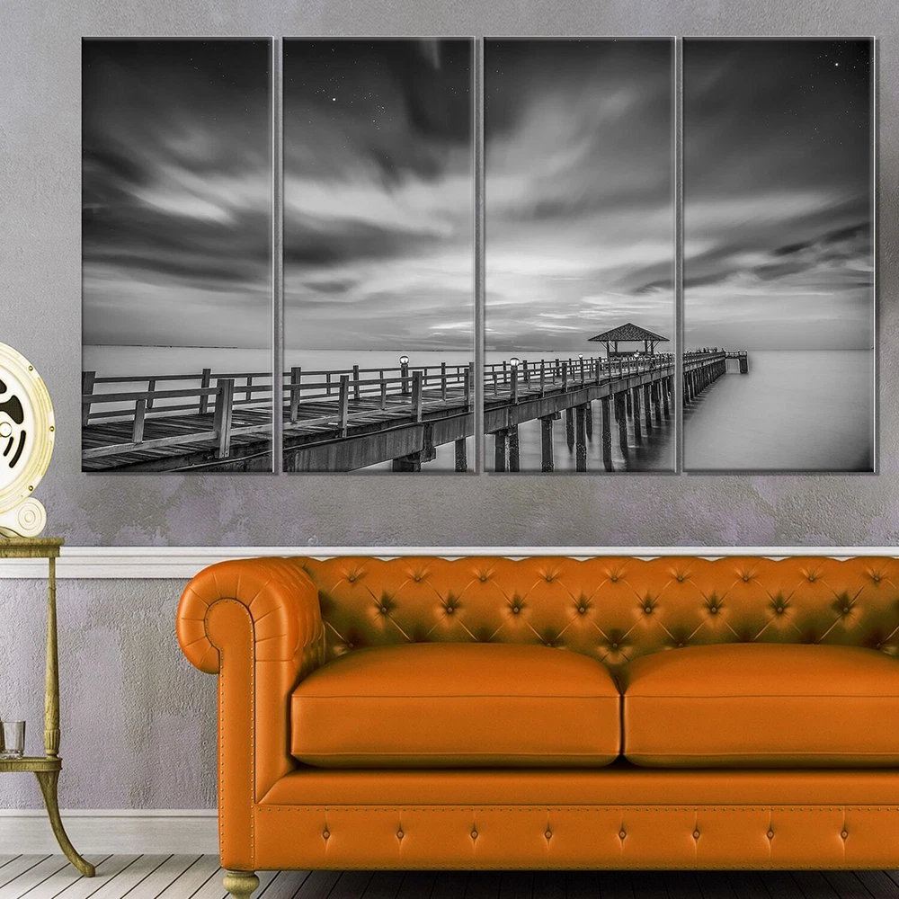 This beautiful Photography Canvas Art is printed using the highest quality fade resistant ink on canvas. Every one of our fine art giclee canvas prints is printed on premium quality cotton canvas, using the finest quality inks which will not fade over time. Each giclee print is stretched tightly over a 1 inch wood sub frame ensuring the canvas is taught and does not buckle. This canvas art print is gallery-wrapped (the design continues on the sides) , giving it a real art gallery feel. All of our canvas prints are carefully packaged, fragile labeling and sturdy boxes to ensure a safe delivery. Every canvas print arrives ready to hang on the wall, with the hanging kits includedPeriod: ContemporaryOrientation: HorizontalSubject: Photography, Architecture, Matching Set, Modern, Decorative, Free Shipping Over $49.99* Details Black and White Wooden Bridge and Sky - Sea Pier Wall Art Blue Product Description: This beautiful Photography Canvas Art is printed using the highest quality fade resistant ink on canvas. Every one of our fine art giclee canvas prints is printed on premium quality cotton canvas, using the finest quality inks which will not fade over time. Each giclee print is stretched tightly over a 1 inch wood sub frame ensuring the canvas is taught and does not buckle. This canvas art print is gallery-wrapped (the design continues on the sides) , giving it a real art gallery feel. All of our canvas prints are carefully packaged, fragile labeling and sturdy boxes to ensure a safe delivery. Every canvas print arrives ready to hang on the wall, with the hanging kits included PeriodContemporary OrientationHorizontal SubjectPhotography, Architecture, Matching Set, Modern, Decorative, Horizontal TypeCanvas Art, Fine Art, Fine Art Giclee, Print, Wrapped MaterialCanvas, Cotton, Wood StylePhotography, Architecture, Matching Set, Modern, Decorative, Horizontal Number of Pieces4+ FramedFramed Exact ColorBlue SizeOversized ColorBlue