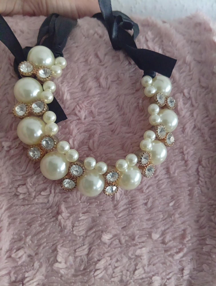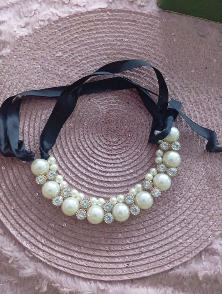 Add a touch of elegance to your outfit with this beautiful faux pearl necklace. The necklace features a black satin ribbon that adds a classy touch to the pearls, making it perfect for formal occasions or to add some sparkle to your everyday look. The necklace is versatile and can be worn as a choker or a collar, and the length can be adjusted from 10 cms to 40 cms to fit your style and preference. The main stone treatment is unknown, but the good cut grade ensures that the pearls are of high quality. The necklace is a perfect accessory for any outfit and can be a great addition to your jewellery collection.