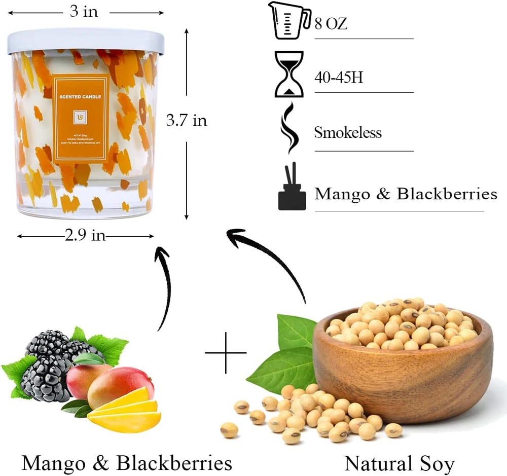 Store New Arrivals Add to Favorite View Feedback Contact Blackberry & Mango Scented Candle Gift Set in Glass Jar Natural Soy Wax Aromatherapy Stress Relief Candle for Women Home Mother Day Christmas Description Wick Quantity 1 Style Classic Number of Items 1 Country of Origin China Candle Type Container Candle Container Material Glass Batteries Included? No Are Batteries Included No Unit Count 8.0 Ounce Batteries Required? No Product Dimensions 3"W x 3.7"H Material Soy Wax Model Name BlackBerry&Mango Package Information Jar Specific Uses For Product Stress Relief Indoor/Outdoor Usage Indoor Item Weight 8 Ounces Material Feature Natural Seasons All Season Occasion Christmas, Housewarming, Birthday Special Features smokeless, scented, long_burning Special Feature smokeless, scented, long_burning Color BlackBerry & Mango Item Diameter 3 Inches Theme Fruit Shape Round Scent BlackBerry&Mango Product Care Instructions [Trim wick to 1/4''] NATURAL SOY CANDLE: The gift candle for coworkers women is blended with just the right amount of fragrance oil, before undergoing a cooling and heating process that results in a unique mottled effect on the finished candle. FIBER WICK: The wicks of the candle gift set is made from 100% natural fibers. Each wick is hand selected to ensure it delivers one of the best burn possible for each fragrance. LONG LASTING: The candle set for relaxing comes with half-clear jar candle of 8.0oz each, with a clear, consistent long lasting burn of approximate 45-50 hours; PRACTICAL LID: The scented candle for home has a metal lid, which can avoid the volatile of essential oil and affect the continuous longer use effect of soy candle; GIFT CANDLE SET: The scented candle is ideal for gift to women in women's day, mother's day, birthday as thank you gift, friendship gift or housewarming gift. Specifications: Material: 100% Natural Soy Wax + Essential Oil Scent: BlackBerry & Mango Height: 3.7in Top Diameter: 3.0in Buttom Diameter: 2.9in Weight: 8.0oz Burning Time: 40-45 Hours Features: Smokeless Cleaning Burning Perfect forChristmas, Birthday, Mother's Day, Father's Day, Anniversaries, Valentine's Day etc. Kind Tips: 1. Keep burning candle in sight at all times to prevent fire. 2. Keep out of reach of children and pets. 3. Keep soy candles away from flammable materials. 4. Place candle on a heat resistant surface. 5. Burn no longer than two hours each time. 6. Store your candles properly in a cool, dry place away from direct sunlight or intense light. 7. Trim wick to 1/4'' to eusure burning evenly. 8. Be sure not to leave the candles in your car for an extended period of time, particularly in hot days as they may melt or discolor. 9. Do not suggest use scented candles in the bathroom as the bathroom space is small and closed, this may cause oxygen lack. Package includes: 1 x 8.0oz BlackBerry & Mango Scented Candle in Jar ABOUT US We offer the best prices around on high quality products. Our E-store includes media such as books, movies, music and games while offering electronics, toys, sporting apparel, clothing, tools, general home, garden items and more. SHIPPING We are always working hard to ensure your package arrives as soon as possible. Please understand that some factors like weather, high postal traffic, and the performance of shipping companies are outside of our control. We offer free shipping to the lower 48 states and ship within 2 business days of payment, usually sooner. We do not accept P.O. Boxes. Please provide a physical address. For shipping outside of the continental USA, we only use eBay's Global Shipping Program.The item is shipped to KY and then sent to the rest of the world. International customers are responsible for all duties and taxes. Continue to check out in order to calculate costs for shipping the item to your country. Messages regarding eBay's Global Shipping Program MUST be directed at eBay EXCLUSIVELY. RETURNS We offer a 30-Day Return Policy on items which you are not completely satisfied with. You have the option for a full-refund or an exchange of the item. No returns are available on items shipped outside of the USA. PAYMENT We accept PayPal. CONTACT US This page content is yet to come Please ad us to your favorite seller and visit again later Thank You CUSTOMER SATISFACTION We try our very best to make sure every customer is completely satisfied. If there's a problem, message us! We're happy to help. WE ACCEPT Copyright © 2021 AutoDS. | All Rights Reserved