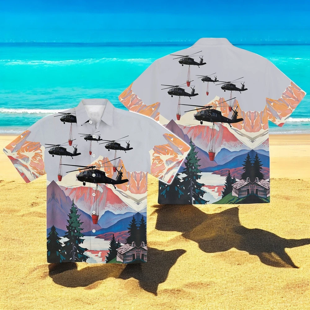 Blackhawk Helicopter Hawaiian Shirt For Men US Size Summer Style New