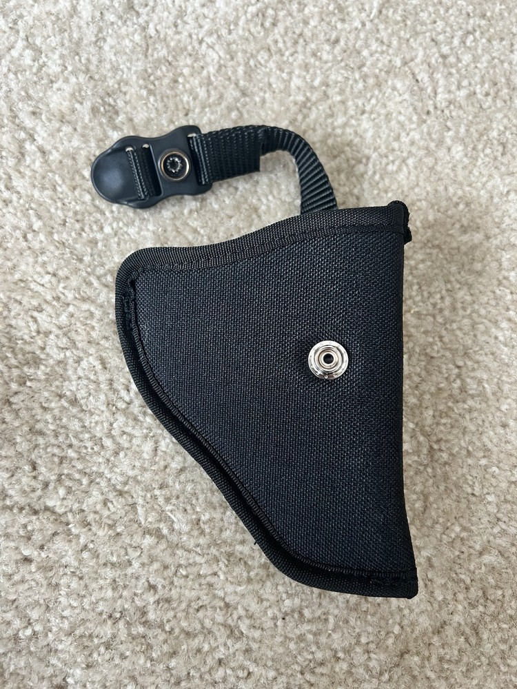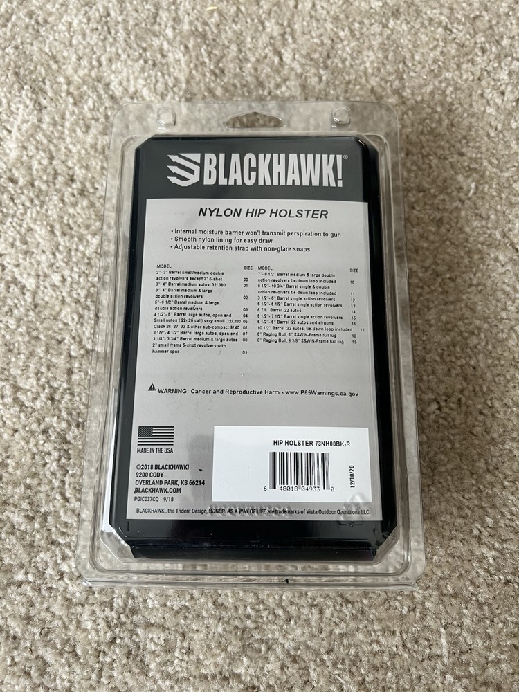 This is a BLACKHAWK! hip holster designed for right-handed shooters, specifically for a 2"-3" barrel small to medium frame revolver. It is made of black nylon, suitable for hip carry. The holster is intended for revolver use and is sized as Size 00 for left-hand draw. This is for Outside Waistband (OWB) Made in the United States. If you need more pictures, feel free to ask!